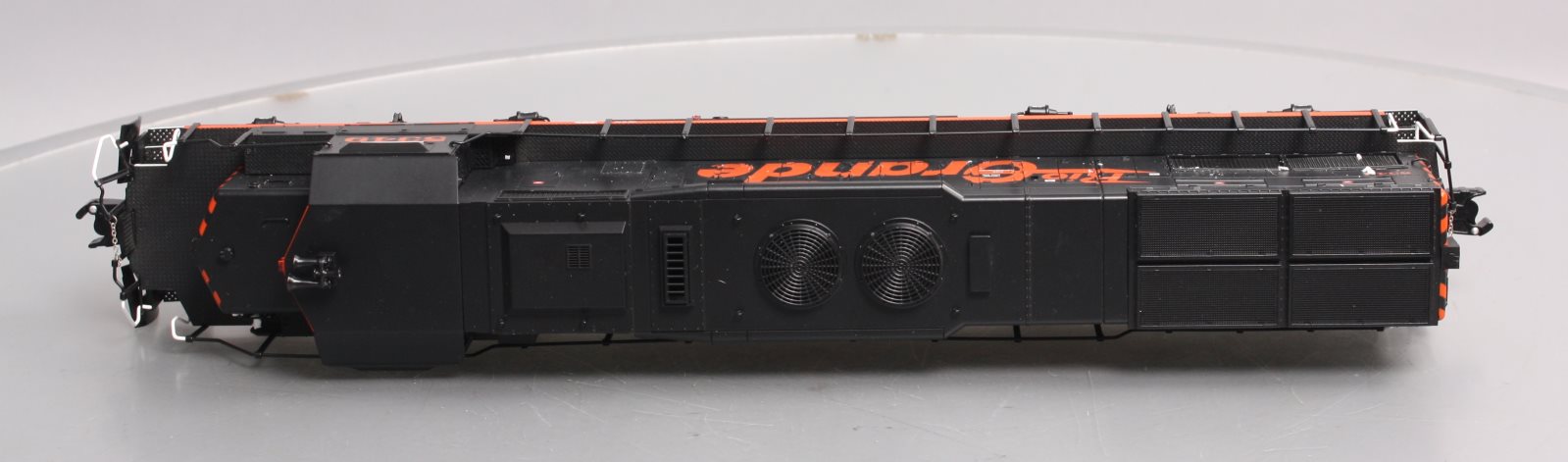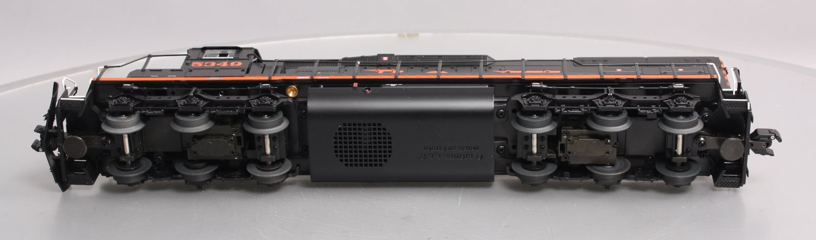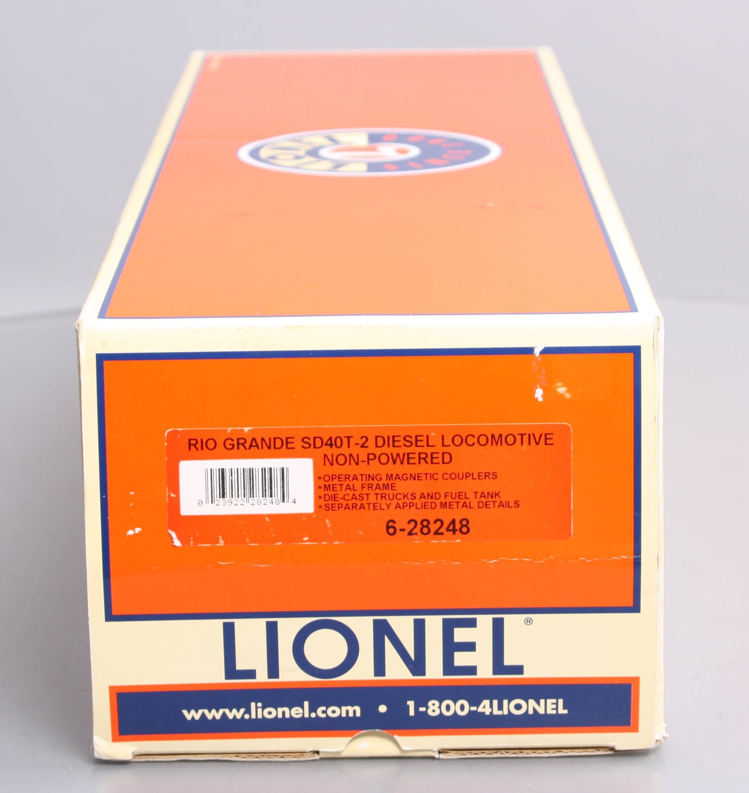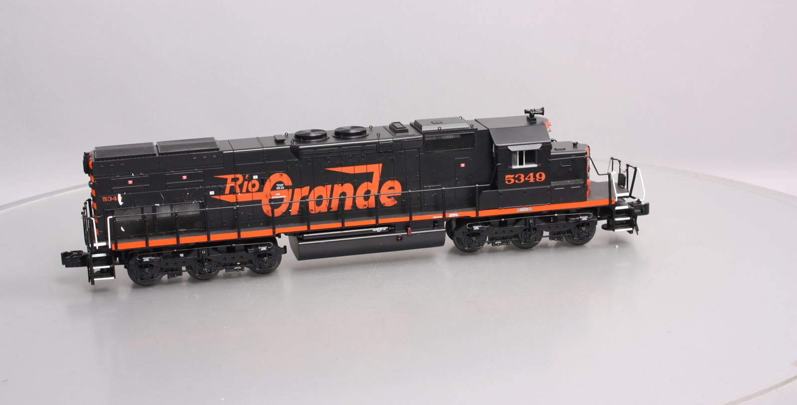 Here is a Lionel 6-28248 O Rio Grande SD40T-2 Diesel Locomotive #5349 (Non-Powered). Features include Die-cast metal trucks, pilots, and fuel tanks, Front and rear operating couplers, Gauge: Standard O, Minimum Curve: O-31, Dimensions: Length: 17 inches, RailLine: Rio Grande.