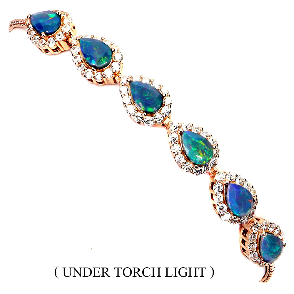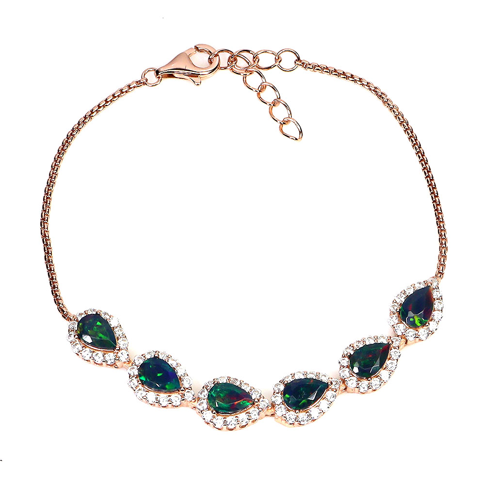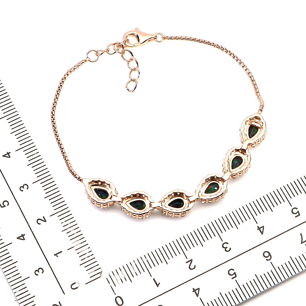925 Sterling Silver Bracelet Pear Black Opal 6x4mm Natural Gemstone Jewelry 6.5