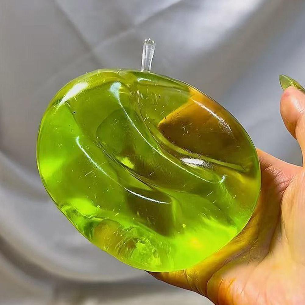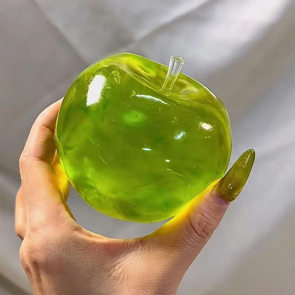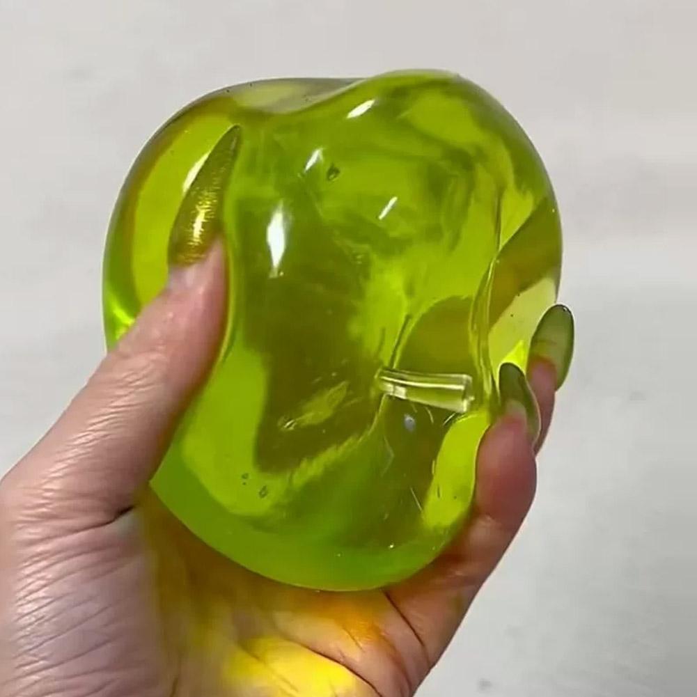 1. Vibrant Green Apple Design: This charming toy is designed in the shape of a fresh green apple, boasting a translucent, bright green hue that is visually appealing. Its delightful appearance adds a touch of playful novelty, making it an attractive item for any desk or collection.