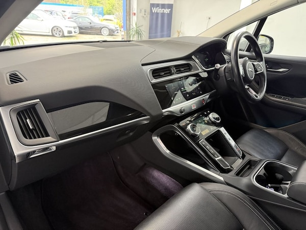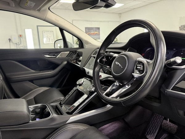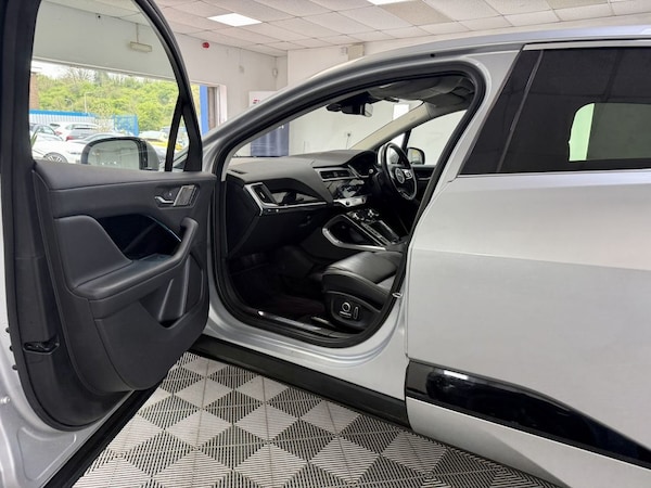 Lovely i Pace Finished In Indus Silver With Contrasting Black Leather Interior. Vehicle Comes With 2 Keys, Service History Including A New Service, A New 12 Months MOT And 6 Months Nation Wide Warranty. Finance Arranged. Great Specification Inclidng A Pan Roof.Indus Silver, 20in Alloy Wheels - 5 Split-Spoke - Style 5070 in Technical Grey with Polished Finish, Fixed Panoramic Roof, Privacy Glass, 10in PiVI Pro, 12-Way Heated Electric - Driver Memory Front Seats with 2-Way Manual Headrests, 12V Power Socket in Loadspace, 12V Power Sockets, 2-Zone Climate Control, 20in Alloy Wheels - 6 Spoke - Style 6007 Gloss Sparkle Silver, 3 Rear Headrests, 3-Flash Lane Change Indicators, 3-Phase 11kW AC Onboard Charger, 360 Degree Surround Camera, 40-20-40 Folding Rear Seats with Centre Armrest, 6 Airbags, ABS - Anti-locking Braking System, AM-FM Radio, ASPC - All Surface Progress Control, Acoustic Laminated Windscreen, Active Sound Design, Active Vanes, Android Auto, Apple CarPlay, Auto-Dimming - Power Fold - Heated Door Mirrors with Memory and Approach Lights, Auto-Dimming Interior Rear View Mirror, Blind Spot Assist, Bluetooth Connectivity, Body Coloured Roof, Brake Pad Wear Indicator, Cabin Lighting, Carpet Mats - Ebony, Clear Exit Monitor, Coil Suspension, Configurable Dynamics, Cruise Control with Speed Limiter, Digital Audio Broadcast - DAB - Radio, Driver Condition Monitor, Dynamic Stability Control - DSC, EBA - Emergency Brake Assist, EPB - Electric Parking Brake, EV400 Badge, Ebony Carpet, Electric Cabin Pre-Conditioning, Electric Windows - Front and Rear with One-Touch Open-Close and Anti-Trap, Emergency Braking, Enhanced Brake Regeneration, Flush Exterior Door Handles, Follow Me Home Lighting, Front Storage Compartment, Front and Rear Cupholders, Front and Rear Parking Aid, Global Lock-Unlock Switch on Driver Door, Gloss Black Trim Finisher, Headlight Power Wash, Headlights - Automatic Levelling, Heated Rear Window with Timer, Heated Steering Wheel, Heated Washer Jets, Heated Windscreen, Hill Launch Assist, Home Charging Cable, Hooks in Loadspace, Interactive Driver Display, Interior Front Door Handles with Separate Locking Switches, Intrusion Sensor, Jaguar Script and Leaper, JaguarDrive Control, Keyless Entry, LED Rear Reading Light, LED Tail Lights, Lane Keep Assist, Light Oyster Morzine Headlining, Lock Only Switch on Front Passenger Door, Lockable Glovebox, Locking Wheel Nuts, Low Power Mode, Low Traction Launch, Luggage Tie Downs in Loadspace, Metal Treadplates with Jaguar Script, Online Pack, Open Differential with Torque Vectoring by Braking, Outside Temperature Gauge, Overhead Lighting Console, Overhead Stowage for Sunglasses, Passive Suspension, PiVI Pro Duo, PiVI Pro System, Pivi Pro Connected, Power Oper