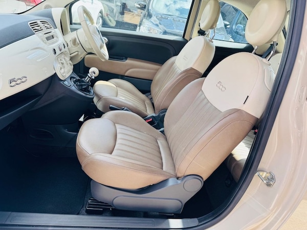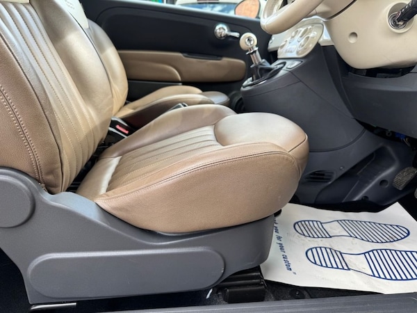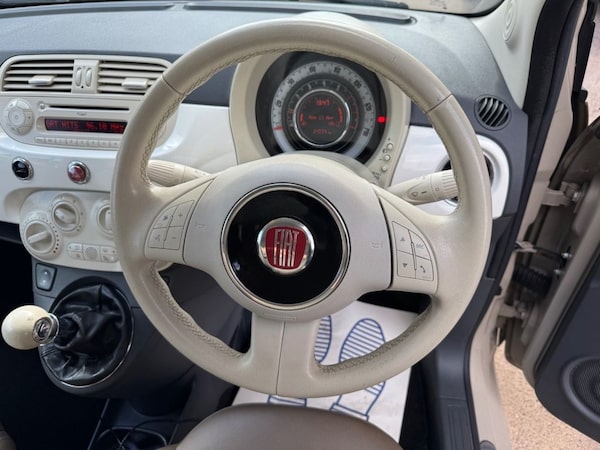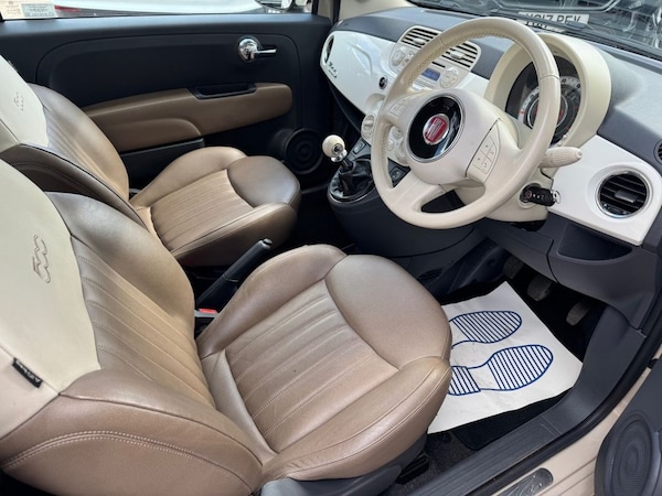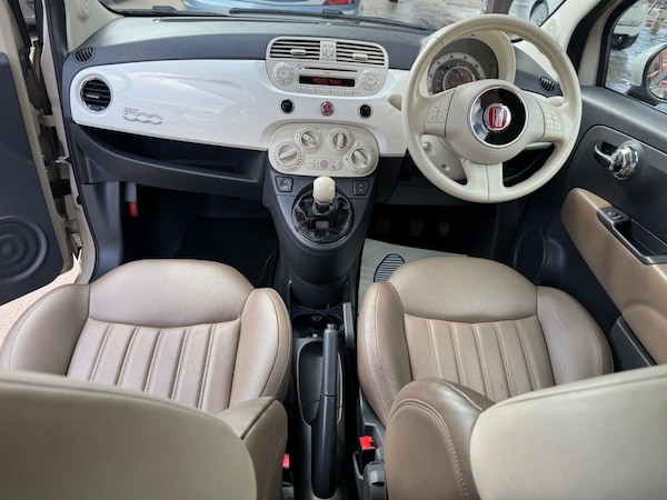 .16in Alloy Wheels - Vintage, ABS - Anti-Lock Braking System, Aerial - White, Air Conditioning, Airbags - Driver, Airbags - Front Side, Airbags - Passenger, Blue&Me - Hands Free System, Body Coloured Bumpers, Chrome Kit, Dashboard - White, Daytime Running Lights, Door Handles - Chrome, Door Mirrors - White, Drivers Knee Airbag, Dualdrive Power Steering, EBD - Electronic Brakeforce Distribution, ESP - Electronic Stability Programme, Electric Front Windows, Electrically Adjustable Heated Door Mirrors, Exterior Logos - Vintage Fiat, Exterior Temperature Sensor, Head Restraints - Rear Height Adjustment, Height Adjustable Drivers Seat, Leather Gear Knob, Leather Steering Wheel, Radio-CD and MP3 Player, Remote Central Locking, Roof - White, Seats - 50-50 Split Folding Rear, Seats - Passengers Memory Function, Space Saver Spare Wheel, Steering Wheel - Height Adjustment, Steering Wheel Audio Controls, Steering Wheel Logo - Vintage Fiat, Traction Control, Tyre Pressure Monitor System, USB Port, Voice Recognition, Window Airbags, Leather - Tobacco-Ivory with Ivory Ambience, New Age Cream