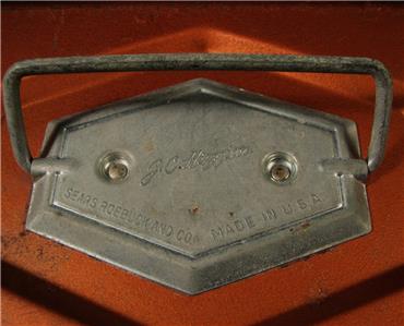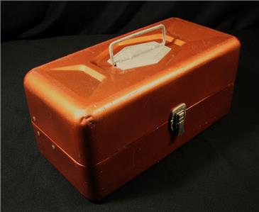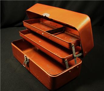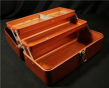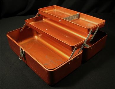 J. C. Higgins Fishing Tackle Box. Pressed Metal. Bronze or Copper in color.