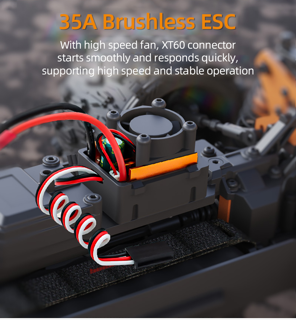 6. Strong suspension system with front and rear anti-sway bars, 50MM high ground clearance. Greatly improve the handling playability of the whole car.