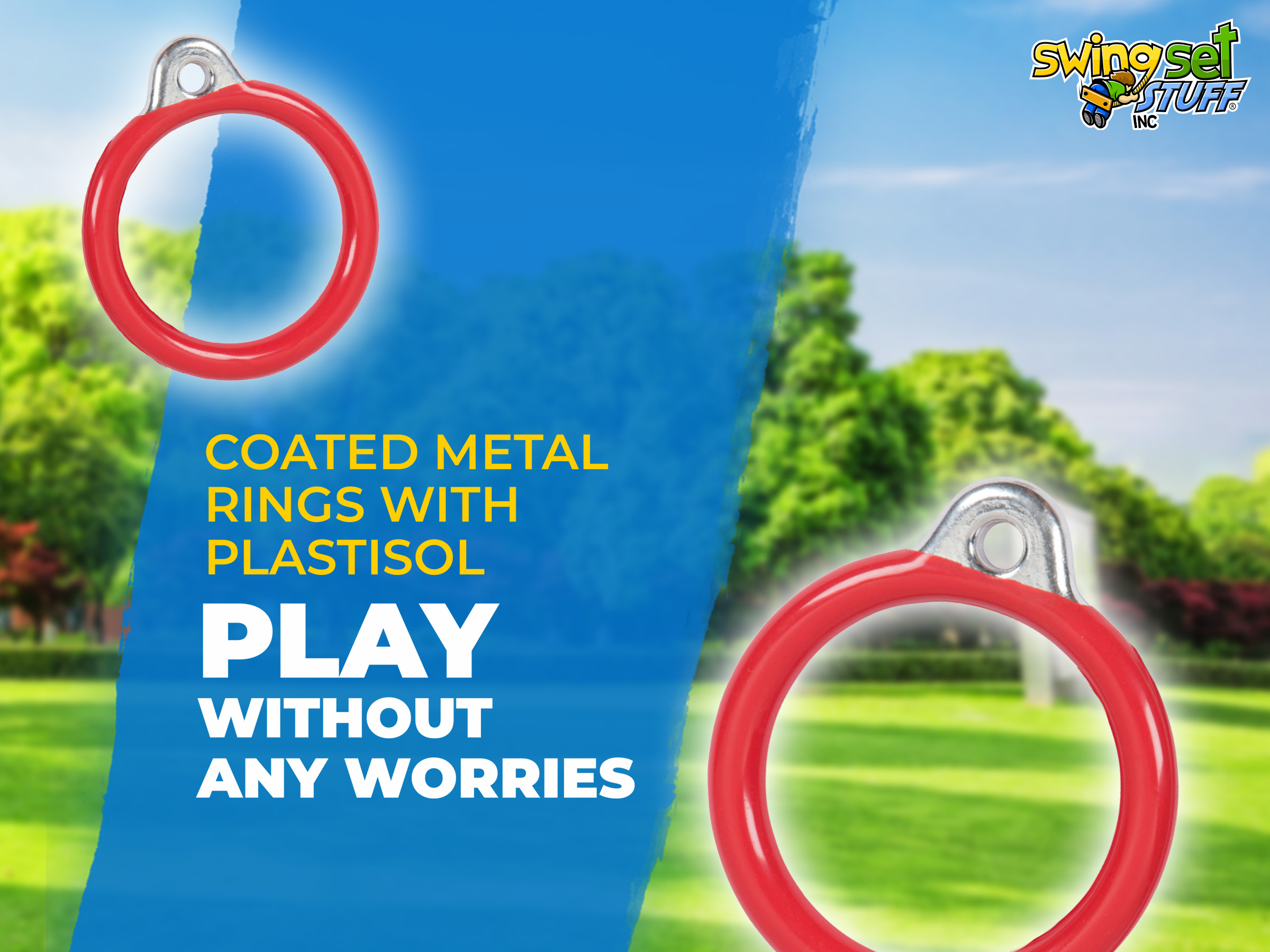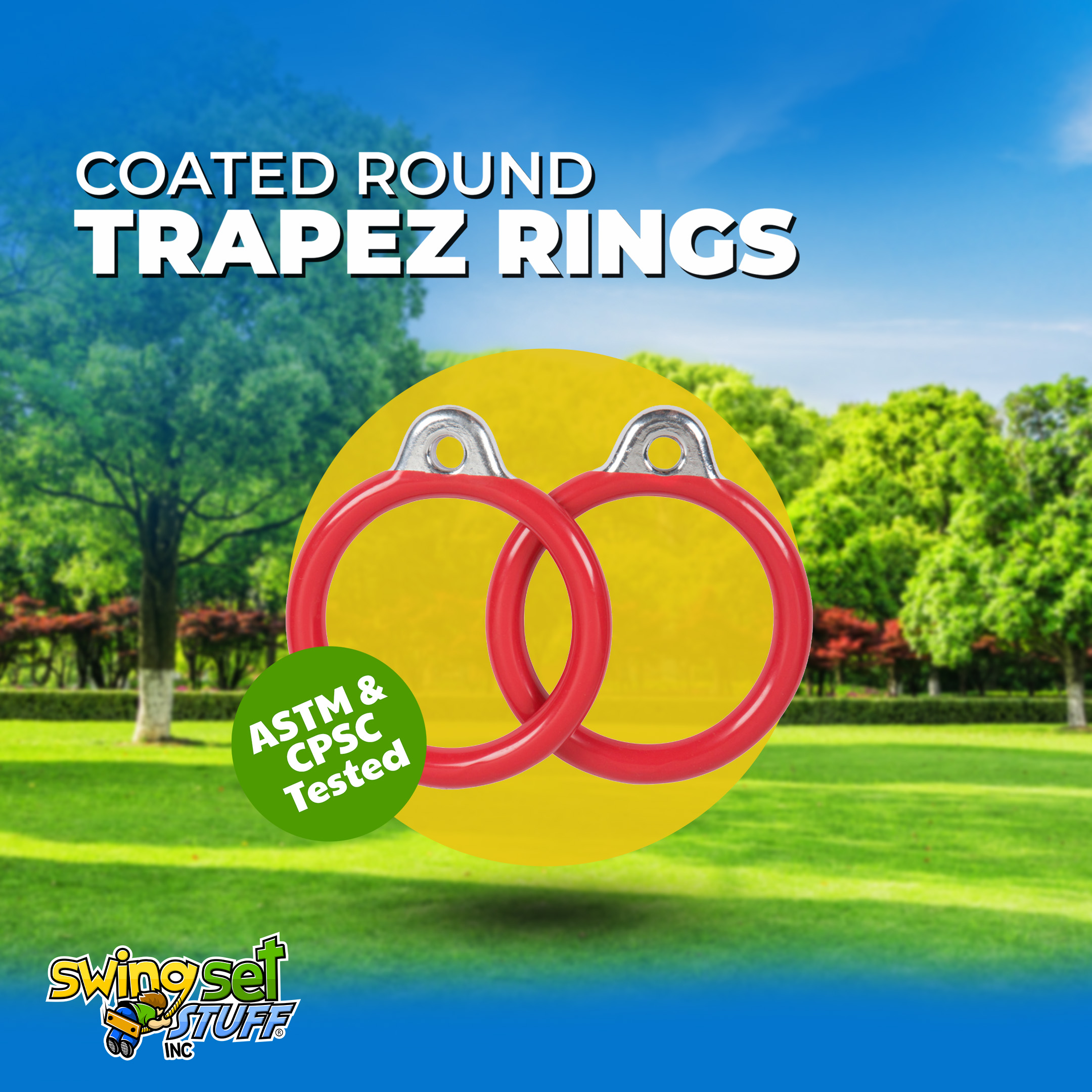 SWING SET STUFF COMMERCIAL COATED ROUND TRAPEZE RINGS RED (PAIR) playground 0015