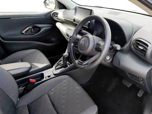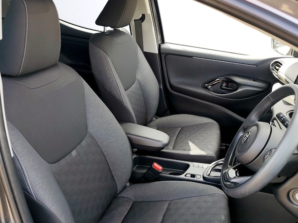 ..7'' Digital Combimeter, Adaptive cruise control, Adjustable speed limit with speed warning, Bluetooth connectivity, Colour binocular inspired displays with digital speedometer, E-call, Electric power steering, Hybrid energy display, Lane trace assist, Multi information display switches on steering wheel, Pre-collision system (PCS), Reversing camera, Smartphone integration with Apple CarPlay and Android auto, Tailgate, Voice recognition, Vehicle Stability Control (VSC), 4 speakers, 9'' Multimedia touch display, Toyota Touch 3 system with DAB radio, USB connection, Acoustic windscreen glass, Auto high beam assist, Auto windscreen wipers, Automatic headlights, Body coloured door mirrors, Electric adjustable heated door mirrors, Follow me home headlights, Front auto power windows with anti jam protection, LED daytime running lights, LED front fog lights, LED front light guide, LED Headlights, LED High mounted stop lamp, LED Indicators, LED rear light guide, Manual headlight levelling, Painted chequered front grille, Rain sensor, Rear auto power windows with anti jam protection, Rear privacy glass, Rear roof spoiler, Rear side wing doors, Rear wiper, Shark fin antenna, Turning signal integrated indicators in door mirrors, Variable front intermittent wipers, 3 adjustable rear headrests, 3 seat bench in 2nd row, 3 spoke leather steering wheel, 60/40 split folding rear seat, Active headrests, Adjustable boot height, Auto air conditioning, Coat hooks in rear grab handles, Cup holders (2 front & door), Data Communication Module (DCM) connected services, Fabric upholstery, Front armrest, Glovebox, Grey roof lining, Height adjustable driver's seat, Isofix seat fixing, Leather gearshift, Pollen filter, Shopping bag hooks, Single front passenger seat, Tilt/telescopic steering column, 3 point seatbelts on all rear seats, ABS+EBD+Brake assist, Electronic parking brake, Emergency brake light system (EBS), Front passenger airbag on/off switch, Front seatbelt reminder, Hill start assist control (HAC), Rear child proof door locks, Rear seat belt reminder, Supplemental Restraint System (SRS) 8 airbags: Driver & passenger's airbags, dual side curtain airbags, side impact airbags, front centre airbag, Toyota Safety Sense 3 with over the air updates, Tyre pressure warning system, 2x Master key, Alarm/immobiliser, Remote powered central double locking doors, Soft touch instrument panel, Space saver spare wheel