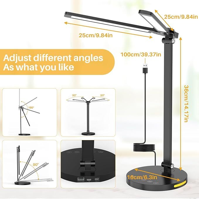 【Dual Folding Design】 Dual heads provide double the lighting area with 10W power. Open 180° horizontally for a wide angle. Foldable to save space and illuminate anywhere. Desk lamp suitable for college dormitories, offices, living rooms, bedrooms, dormitories