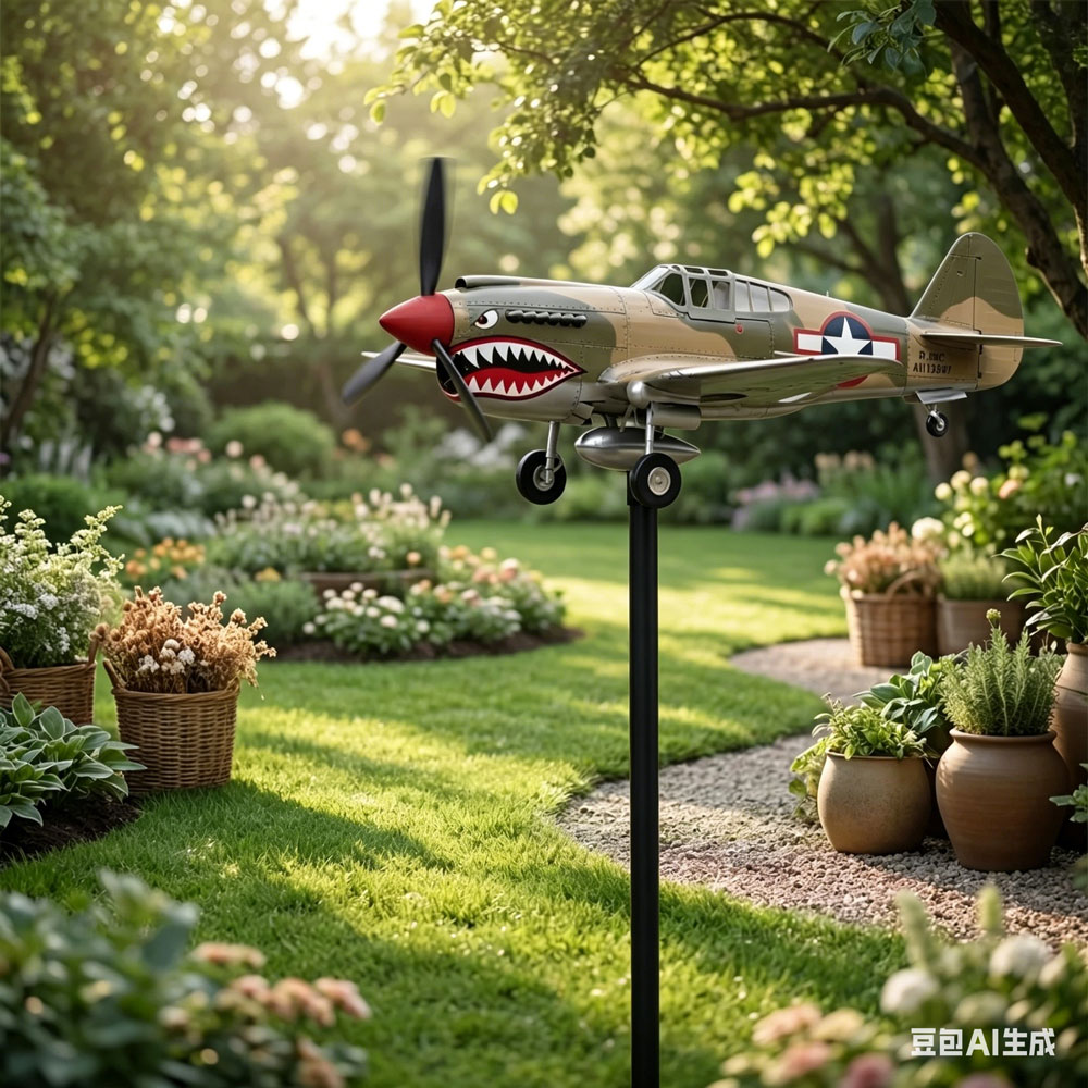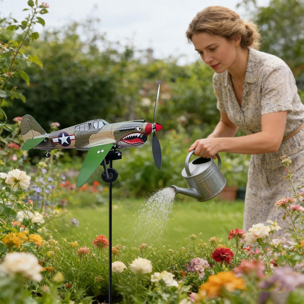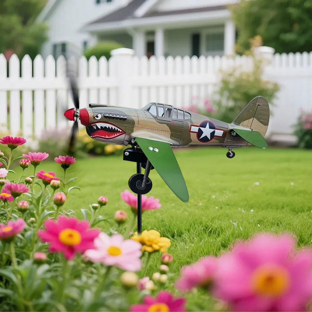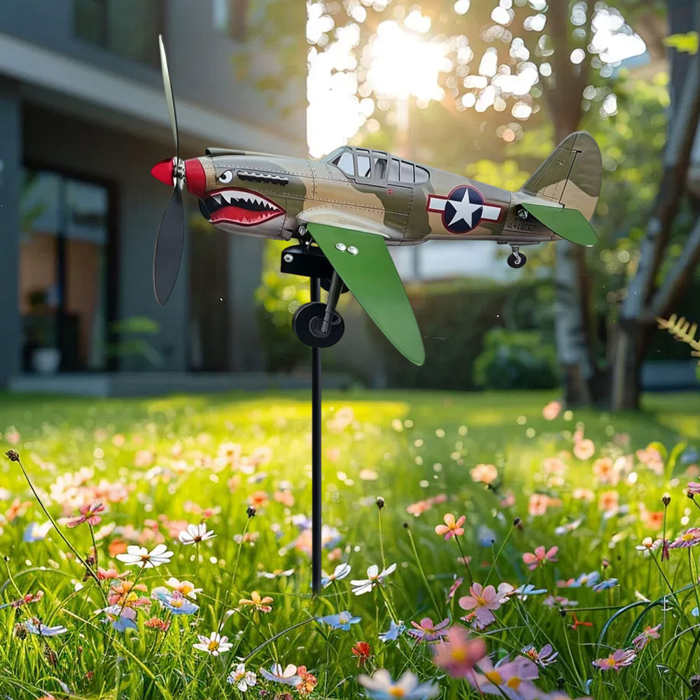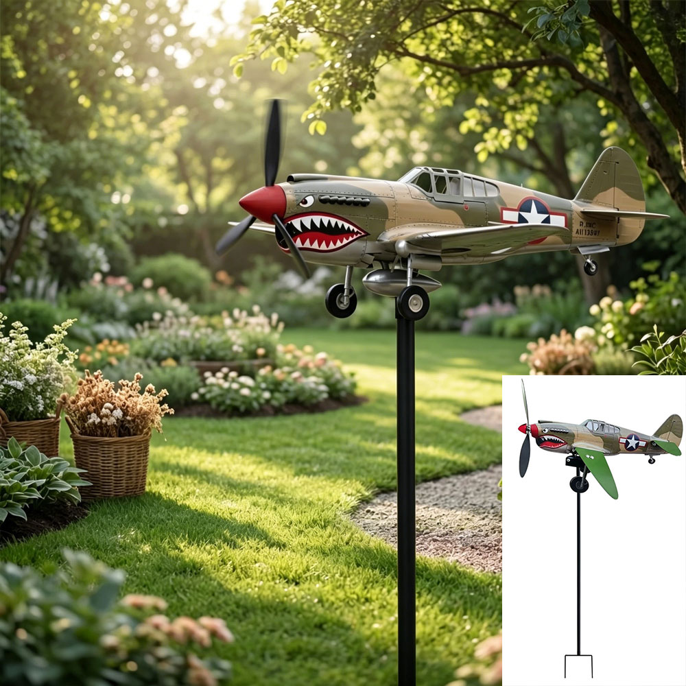 Bold Garden Focal Point: The Garden Wind Spinners feature a special sculptural form with a shark-mouth fighter motif, creating an artistic centerpiece that draws attention and sparks conversations in any outdoor setting, blending vintage aviation inspiration with functional garden decor for enhanced visual appeal and dynamic movement in your yard or patio space