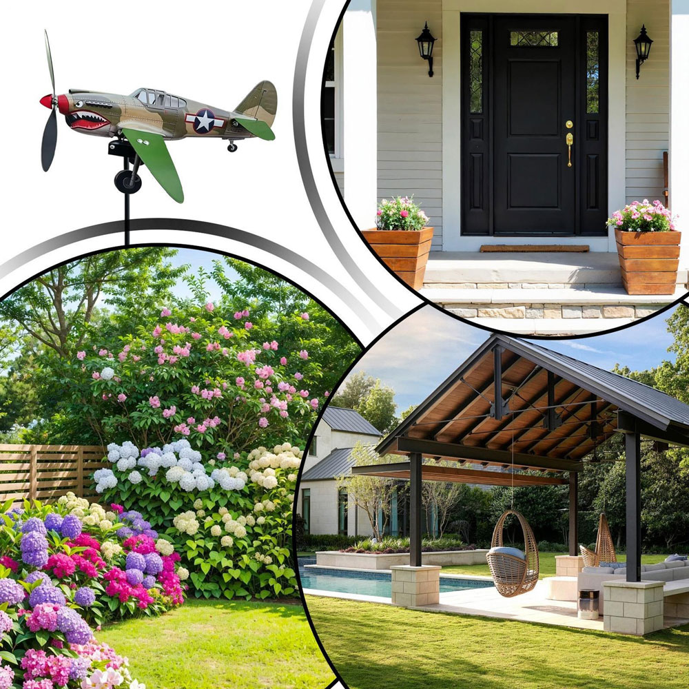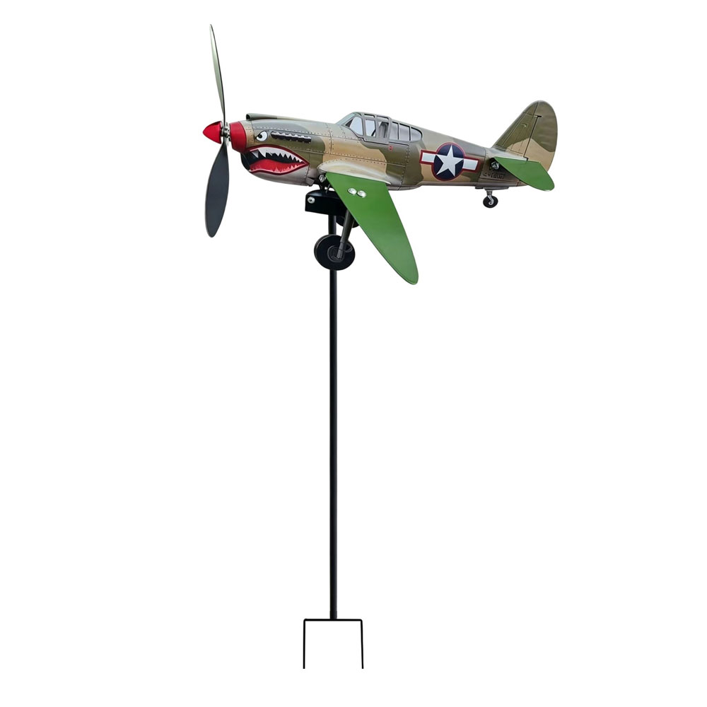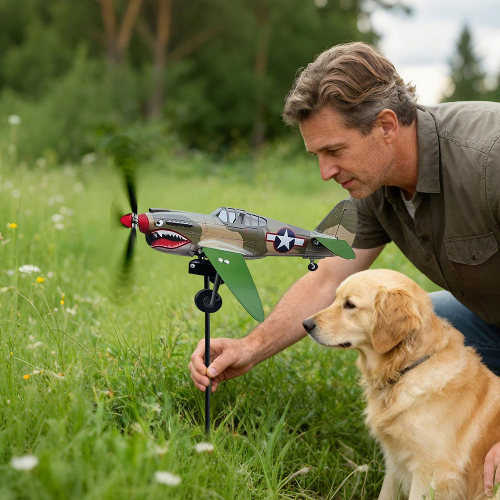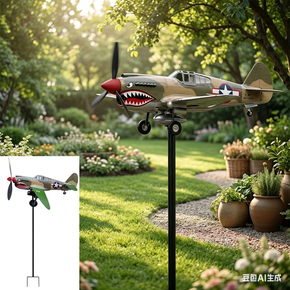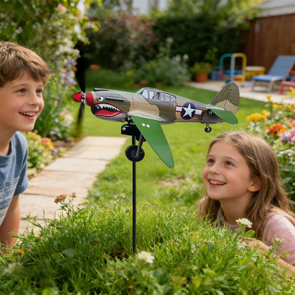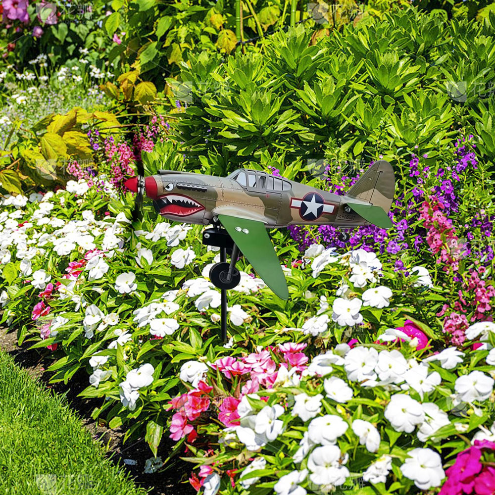 Bold Garden Focal Point: The Garden Wind Spinners feature a special sculptural form with a shark-mouth fighter motif, creating an artistic centerpiece that draws attention and sparks conversations in any outdoor setting, blending vintage aviation inspiration with functional garden decor for enhanced visual appeal and dynamic movement in your yard or patio space