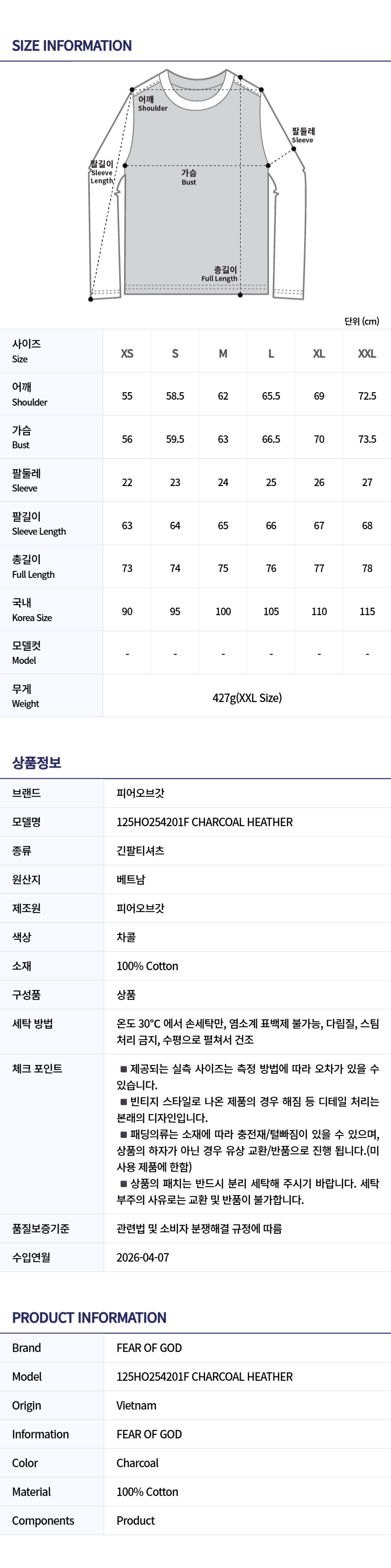 - Warnings - Gender: Men - Brand: FEAR OF GOD - Product Name: Fear of God Men's Long Sleeve T-Shirt 125HO254201F Charcoal Heather 155071985 - Color: Charcoal Heather - SKU: 125HO254201F CHARCOAL HEATHER - trenbe Code: 155071985 |