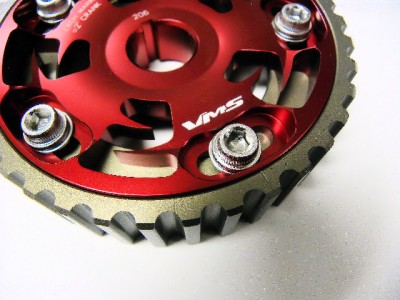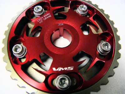 The VMS Racing 5-bolt design Cam Gear eliminates any chance of slippage while the hard-anodized finish prevents premature wear. This allow for fine tune adjustments to cam timing to maximize engine performance, and tailor power characteristics for various driving conditions. VMS Racing cam gears are very reliable and designed with the best quality ever.