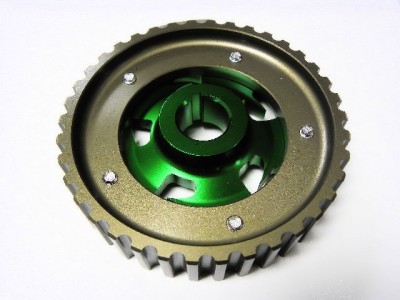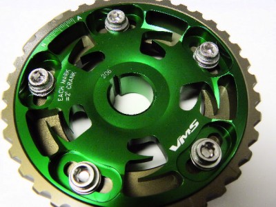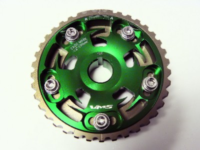 The VMS Racing 5-bolt design Cam Gear eliminates any chance of slippage while the hard-anodized finish prevents premature wear. This allow for fine tune adjustments to cam timing to maximize engine performance, and tailor power characteristics for various driving conditions. VMS Racing cam gears are very reliable and designed with the best quality ever.