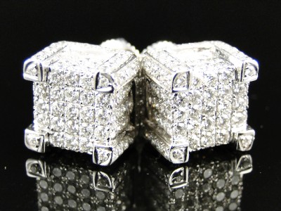 Brand New pair of diamond earrings set in solid 10 k White Gold. (4.8 gms)