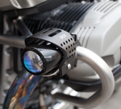 Corpo in alluminio per dare massima resistenza e leggerezza, e fascio di luce anabbagliante. Forniti di griglia protettiva, hanno comodi attacchi per il fissaggio su ogni tipo di tubolare nei diametri 25-28-35-45 mm. Il fascio anabbagliante è affidato ad una potente lampada H3 da 55W, studiata per generare un campo illuminante ottimale anche nelle situazioni più estreme così da garantire una guida sempre in sicurezza.