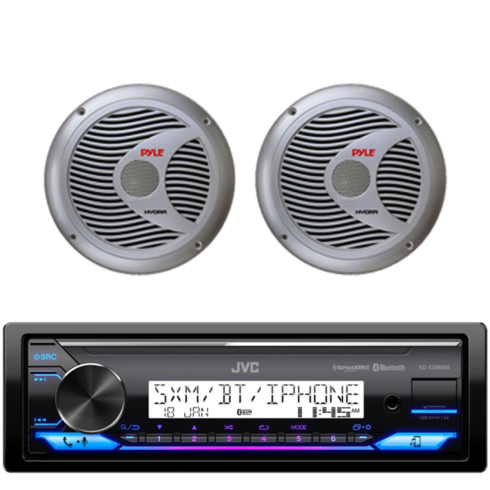 JVC KD-X38MBS Single DIN Marine MotorSports Bluetooth USB AUX LED Stereo SiriusXM Receiver, 2x Pyle 6.5" 150W Speakers