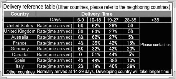 -We ship package via regular airmail, if you want to choose faster shipping way like EMS, DHL ..Please choose $19.99 shipping cost or contact us ASAP.