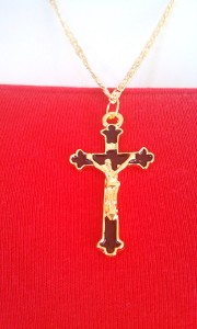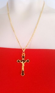 New Long Gold Plated Necklace With Black Cross Pendant 14"( include the pendant)