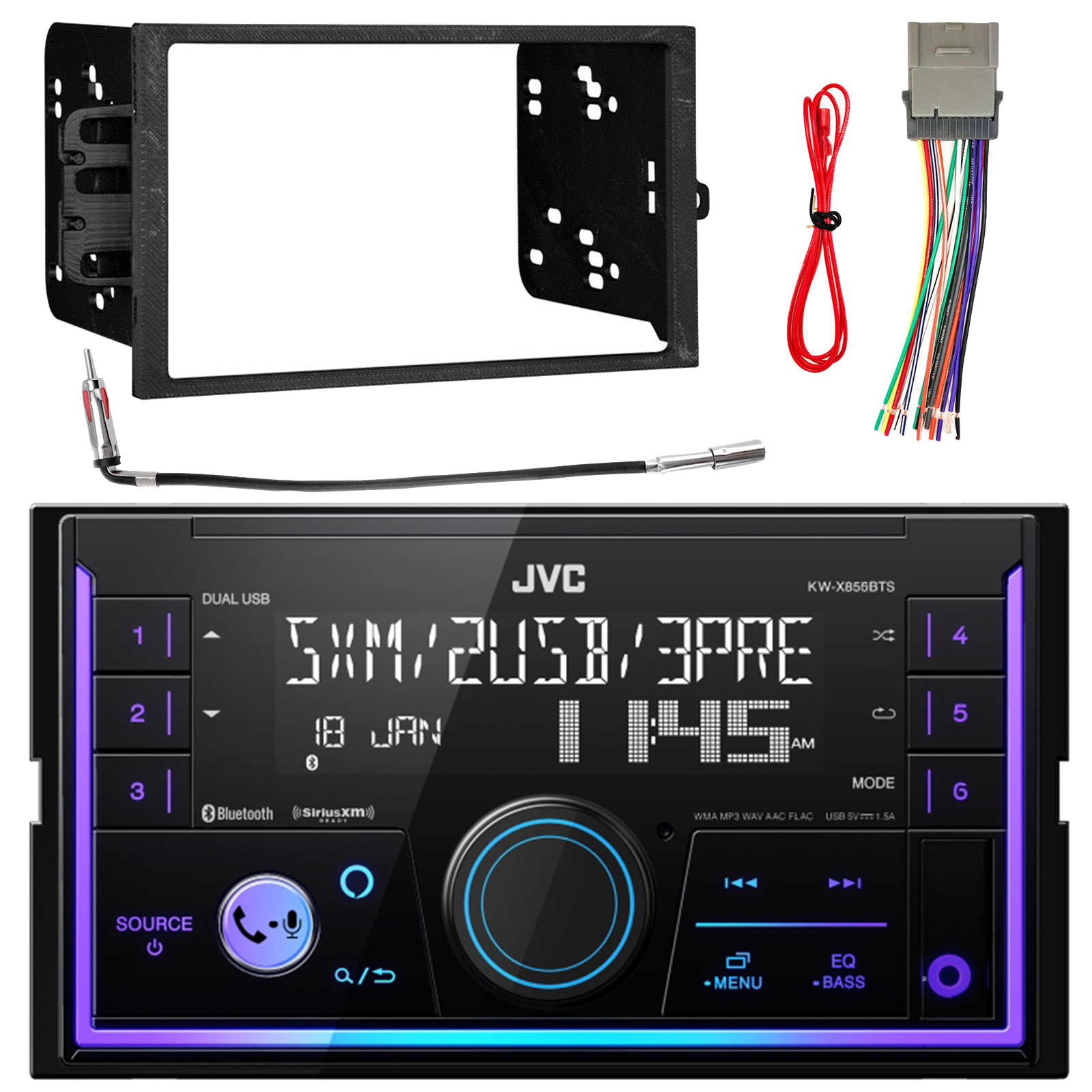 • PACKAGE BUNDLE INCLUDES: JVC KW-X855BTS Double DIN Bluetooth USB AM/FM Radio Digital Media Built-In Amazon Alexa Stereo Receiver, Double DIN Installation Dash Kit, Wiring Harness, Antenna Adapter (Bundle Fits Select 2000-2008 GM Vehicles)