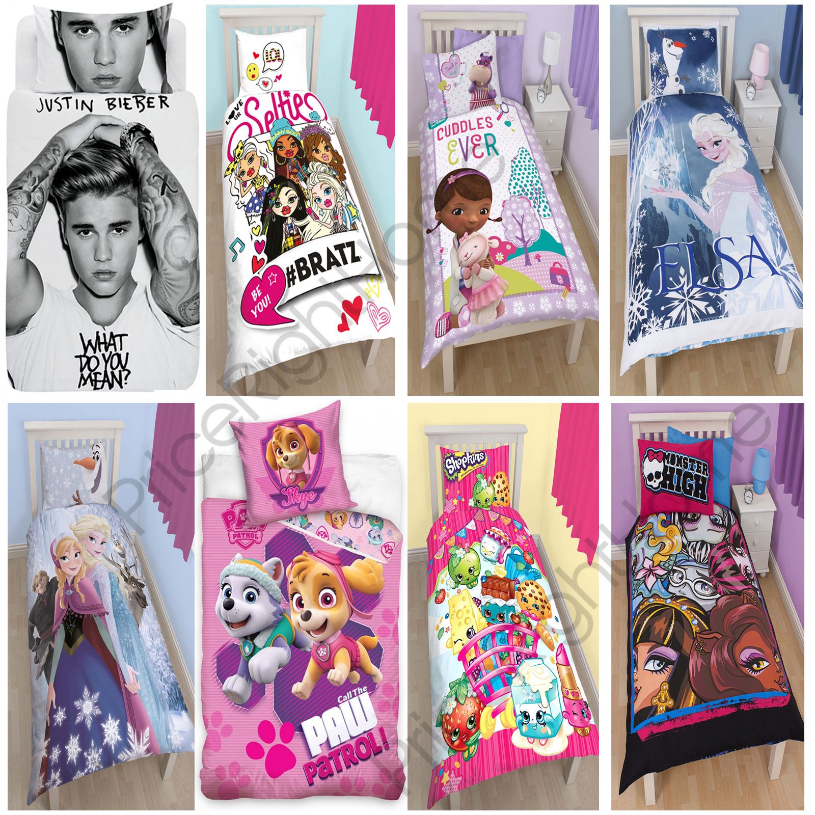 These cute and colourful bedding sets are a must for any character fans of all ages. The reversible designs feature your little one's favourite characters, perfect to add finishing touches to a themed bedroom. Featuring designs including Minnie Mouse Café Girls Single Panel Duvet and Pillowcase Sets - 2 In 1 Reversible - Choose From: Ghostbusters, Minnie Mouse, Doc McStuffins, Disney Princess, Justin Bieber, Disney Frozen, Minions, Marvel, My Little Pony, Finding Nemo, Monster High, Bratz, Pokemon, Paw Patrol, Trolls, Shopkins, Teletubbies, The Jungle Book + More