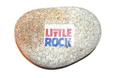 Here's an unusual piece of political memorabilia from the Clinton campaign. No, not that Clinton--BILL Clinton's presidential campaign of 1992! It is a piece of well worn river rock about 3 1/2" wide, 2 1/2" tall, and 1 1/4" thick. Weight is about 12 ounces. Stenciled in red, white, and blue paint on the top surface is "Clinton's Little Rock." Word is these rocks were given to campaign workers at the Little Rock headquarters in Arkansas when Arkansas Governor William (Bill) Clinton ran for President. Little Rock, capital of Arkansas, is on the banks of the Arkansas River, but I don't know if that is where this rock was collected. I don't have any idea how many of these were given out, nor how many remain in circulation, but you probably won't see too many like it! Shipped by Priority Mail. Please note that there is a slight darkening on one side, apparently from a sticker of some sort. It is more obvious from the photo flash than it is in normal light.