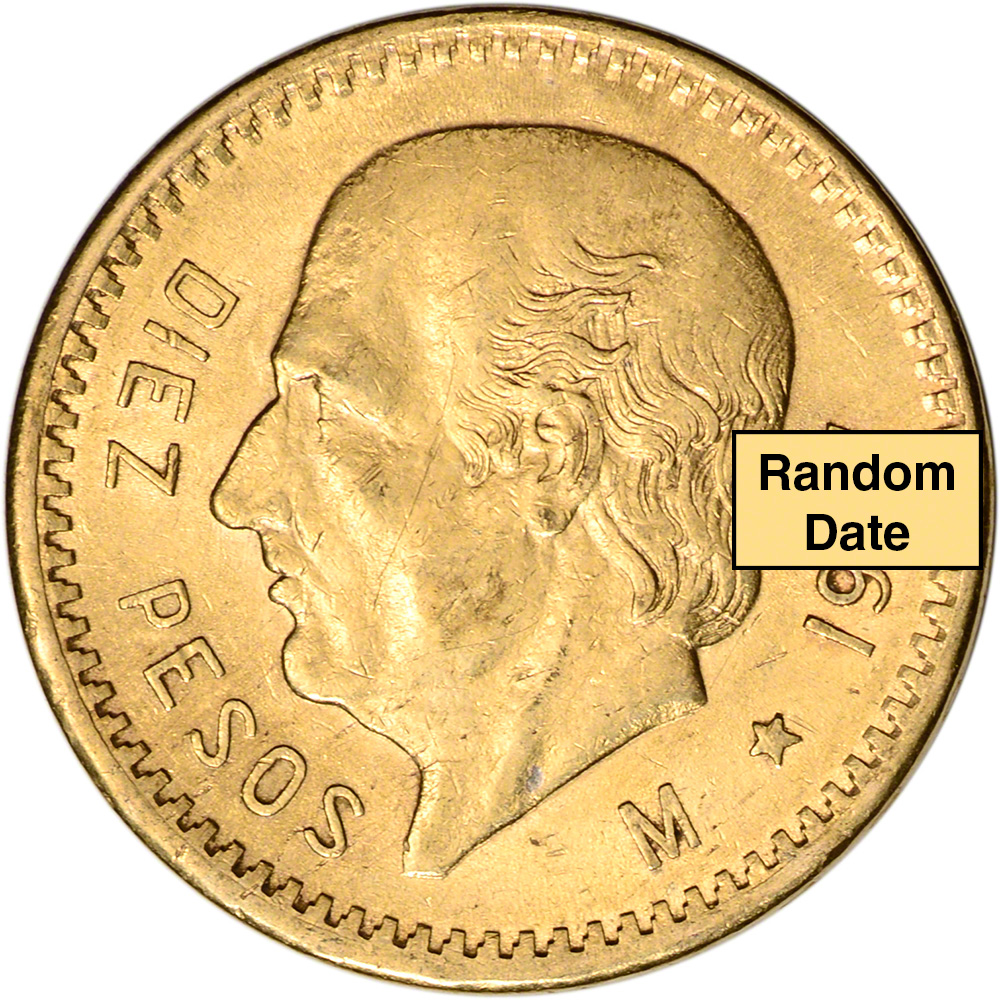 Mexican Gold 10 Pesos contain 0.2411 oz. of gold and are a popular choice for investor's because of the low premium over the spot price of gold.