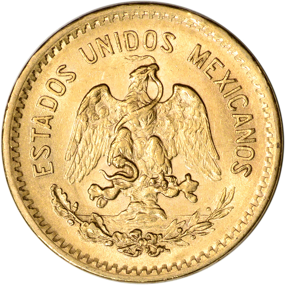 Obverse: Displays the Mexican Coat of Arms with an eagle perched on a cactus devouring a snake with inscription ESTADOS UNIDOS MEXICANOS.