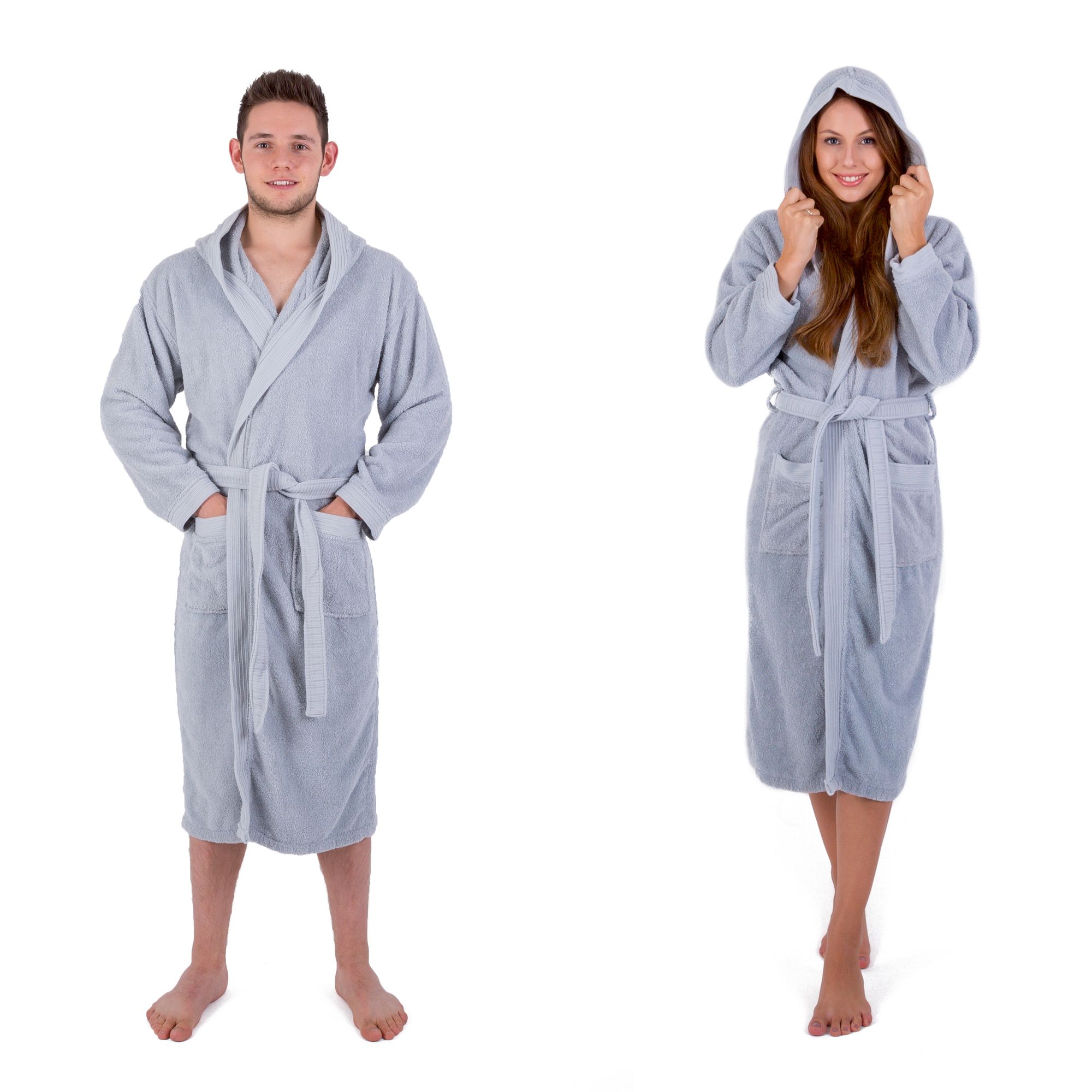 Außergewöhnlich kuscheliger Bademantel mit Kapuze und zwei aufgesetzten Taschen aus Luxus-Frottee mit Bindegürtel.
