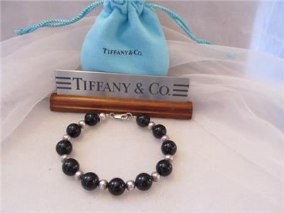 Vintage Tiffany & Co. Black Onyx & Sterling Silver Bracelet with clasp Excellent Pre-Owned Condition 100% Authentic Measures Inside Circumference 7" End to End 8" Timeless Tiffany Eternally Cherished, Everlasting Beauty, Original Tiffany creation of incomparable beauty Elegant Exquisite Vintage 1990 Tiffany & Co. Onyx & Sterling Silver Bead Bracelet An Original Tiffany creation of incomparable beauty Onyx Beads 10mm Sterling Silver Beads 6mm 100% Authenticity Guarantee Round sterling silver disc attached Hallmarks Tiffany & Co. 925 Weight 19.8 grams -Excellent Condition - *All our items are guaranteed Authentic*