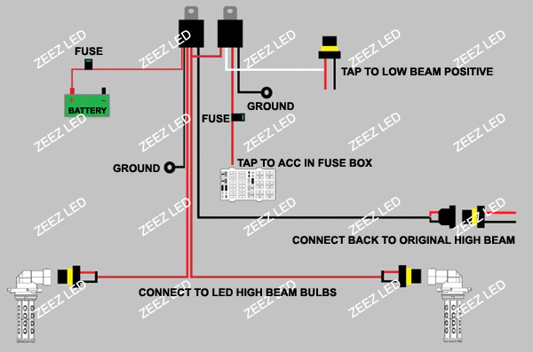 This special setup will convert the non-DRL H7 high beam to LED. When you start the car, the H7 LED bulbs will turn on as daytime running lights. When you turn on the low beam, the LED bulbs will turn off but when you flip on the high beam, the LED bulbs will turn back on.