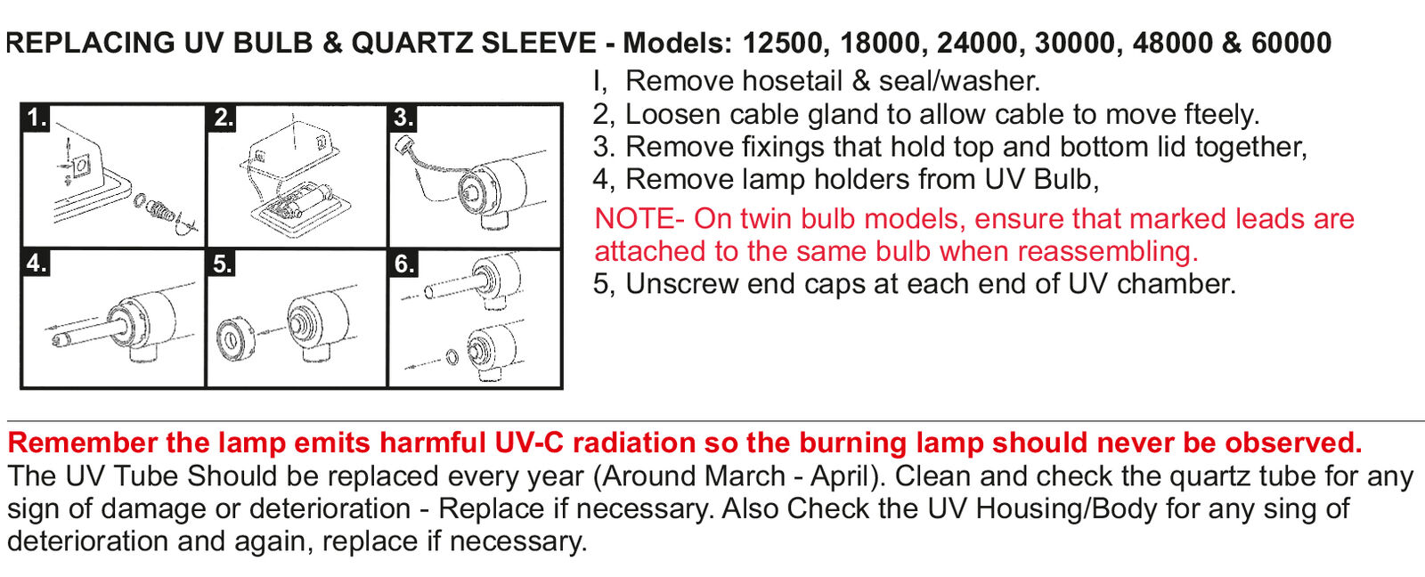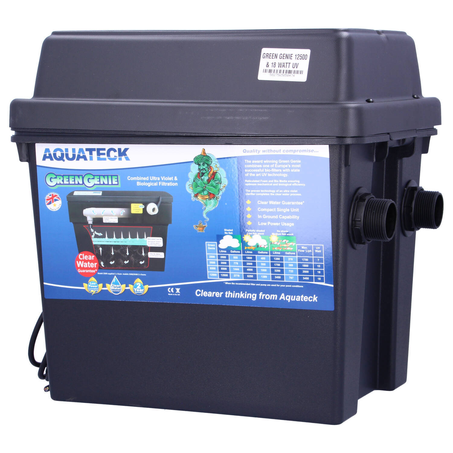 Each unit has an integral Philips Ultra Violet lamp which treats algae cells in the water. They are clumped together for easier removal. Removing the algae from the water lowers the risk of an algae problem in the summer months. The larger models from 12,500 upwards come complete with two lamps to ensure that larger bodies of water are properly treated.