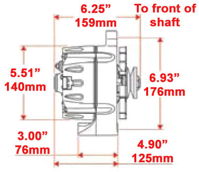 - 1984-1990 Bronco II, With int. reg. & straight mount (Stock alternator was 70 Amp)