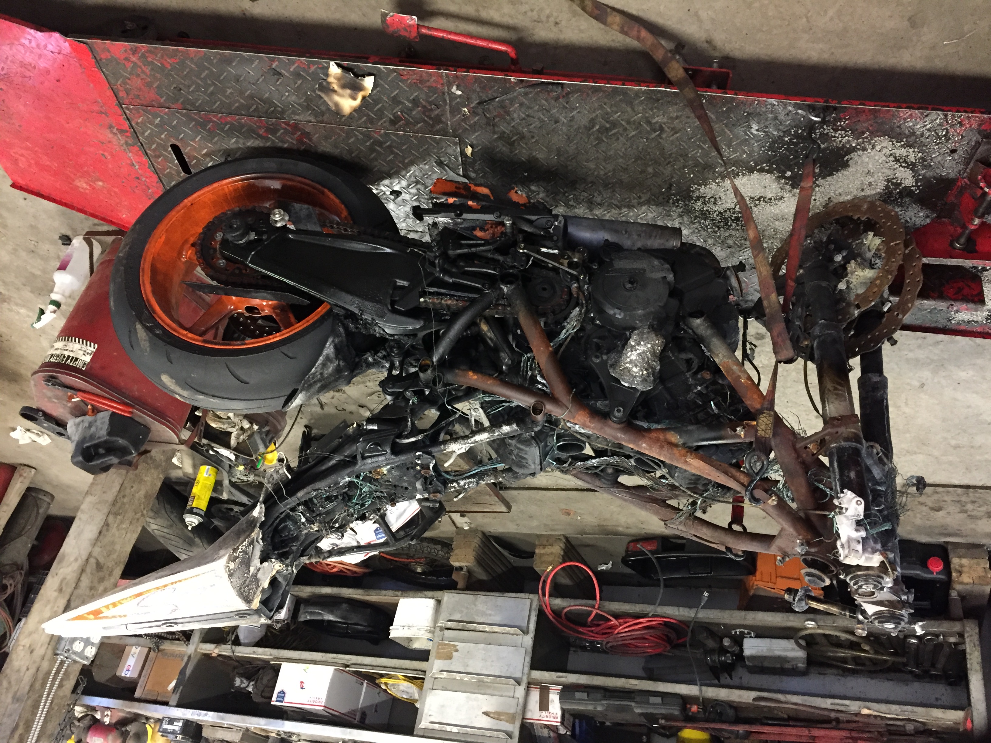 Front end damage and burned.