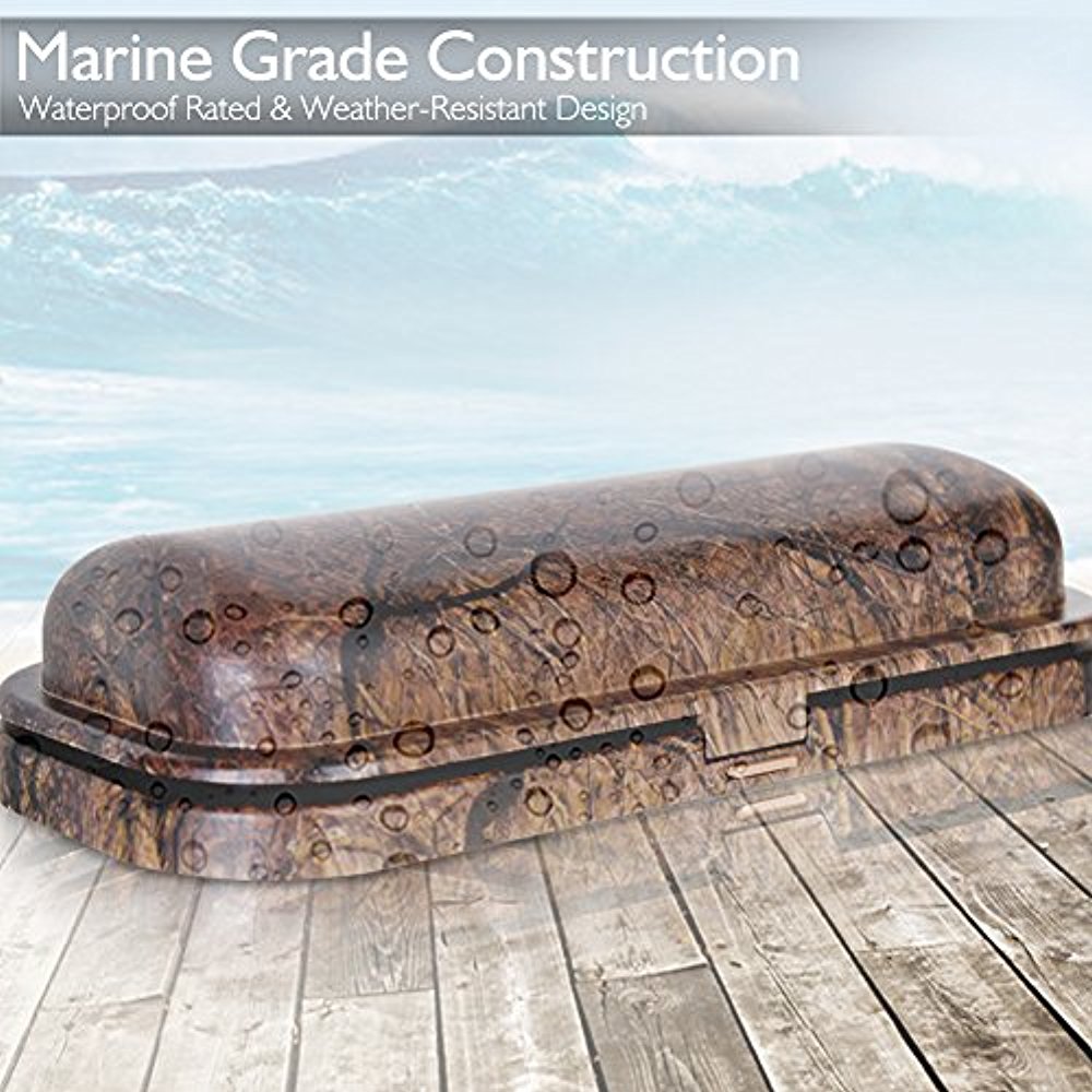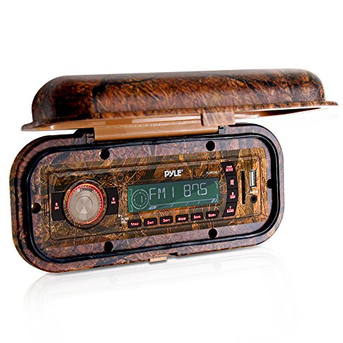 Pyle Model : PLMRDKC1 Marine Stereo Radio Shield Cover Marine Stereo Shield Cover - Waterproof Rated Marine Boat Radio Housing, Camo Style, Single DIN Features: Protects Your Stereo from The Elements Universal Marine Stereo Shield Cover Standard Size Compatible with Single DIN Radios Waterproof Rated & Weather-Resistant Design Marine Grade Construction Sun & UV-Resistant Coating Hunting Camouflage Pattern Style Spring Loaded Radio Access Door Cover Used for Automobile, Boat, Marine Watercraft Vehicles Technical Specs: Single DIN Universal Standard Size Construction Material: Engineered ABS Total Dimensions (L x W x H): 9.0?? x 1.8?? x 4.1?? -inches This water resistant radio shield protects your head unit from the elements. UV-resistant coating decreases sun exposure to your stereo to prevent damage like cracking. The spring loaded flip-up door is easy to access. Support shelf in rear of housing holds the radio. It is ideal for automobile and watercraft vehicles and compatible with single DIN radios.