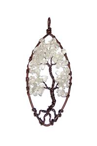Here's a lovely handcrafted "Tree of Life" pendant for you! It is BRAND NEW, and is about 1 1/2" wide and 3 5/8" tall, including bail. The bail is fairly small, about 3/16" wide, but would fit a wire, ribbon, or chain with small findings. The wire is all antiqued copper, and the "leaves" are tumbled clear quartz chips. Each tree pendant is individually made, so yours might differ a bit from the photo.