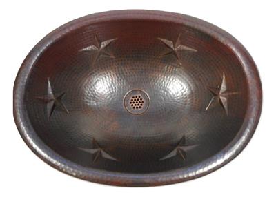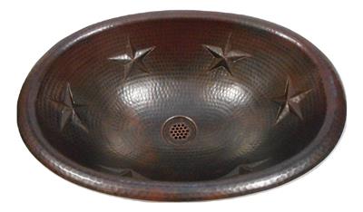 SimplyCopper 19" x 14" oval design, created of 18-gauge copper which is hand-hammered to provide a rustic antiqued look. This copper sink is installed as a Drop In.