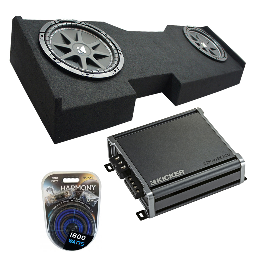 Compatible with 2014–2018 Chevy Silverado Crew Cab, the Kicker Comp C10 Dual 10" Subwoofer Box paired with the Kicker CXA800.1 Mono Amplifier delivers powerful, hard-hitting bass in a perfectly matched setup. With a final 2-ohm impedance, this system is optimized for high-output performance and clean, distortion-free sound.