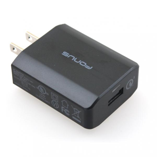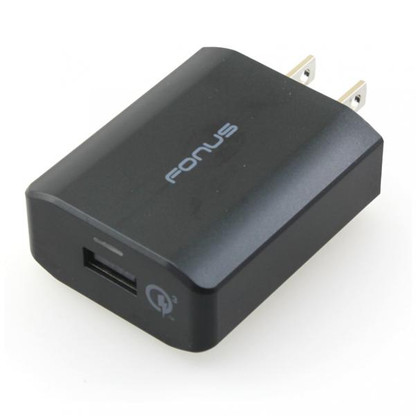18W Adaptive Fast Home Charger 6ft Type-C Turbo USB Cable Adapter Wall Travel AC Power Smart Detect Long USB-C Data. Fonus(TM) 18W Quick Charge 3.0 Adaptive Fast USB Charger is the latest design from our QC3.0 product line up. Equipped with the latest Quick Charge 3.0 technology, the Fonus wall charger offers blazing fast charging for QC3.0 compatible devices. You can get 70% phone battery charged in as short as 30 minutes, while conventional charger can take up to an hour and half. Not just for QC3.0 devices, the charger is also designed for non-QC devices like iPhone and iPad. USB port is the Quick Charge equipped with iSmart technology that can offer up to 2.4A of power current to charge your device. Simply plug in and the charger will automatically figure out what voltage to offer. As powerful as it can be, the charger is also loaded with all the necessary features to give you a 100% safe charging experience: durable casing to protect damages from outside, high temperature, high current and voltage surge protection to guard internal circuit. NOTE: Your device must support Fast Charging Feature for 75% faster charging. Otherwise this will charge at 2.4Amp speed. 6ft Long Type-C USB Cable with Turbo Charging Support is included.