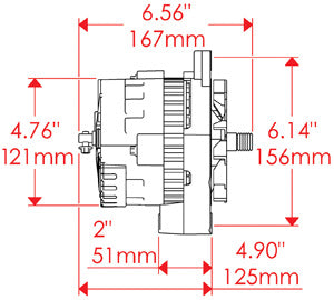 156mm bolt pattern Delco Alternator Diagram: (This is included to show the style of alternator that will fit with this kit. This kit doesn't include the alternator itself. Click here to see the kits with the Delco alternator included.)