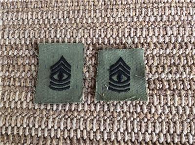 2 LOT (2) U.S. ARMY First Sergeant Rank Tabs OD GREEN Genuine US Military Surplus.