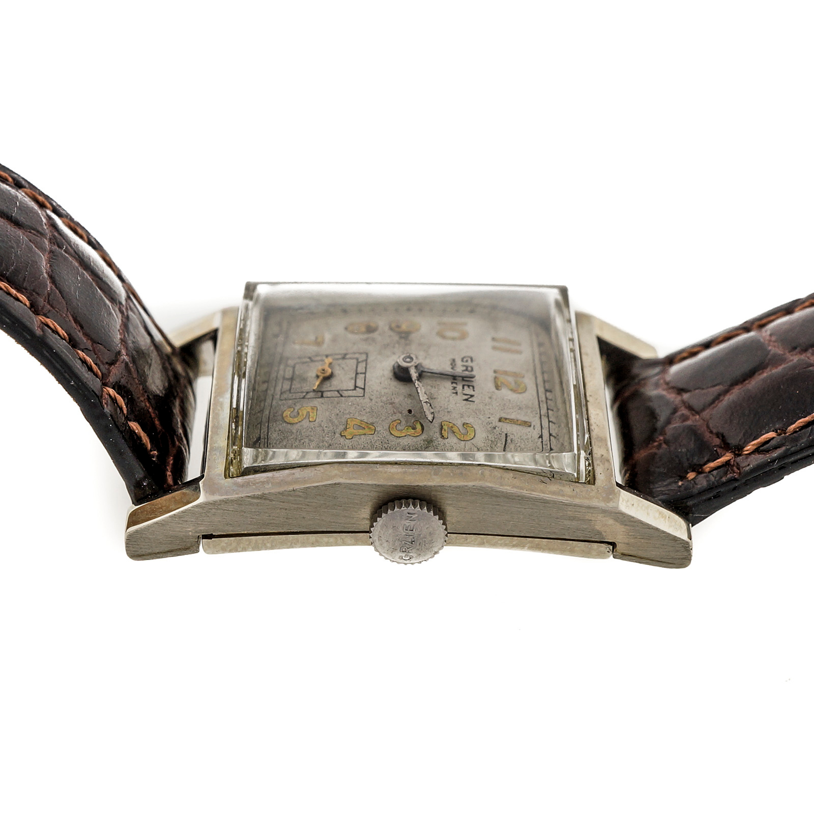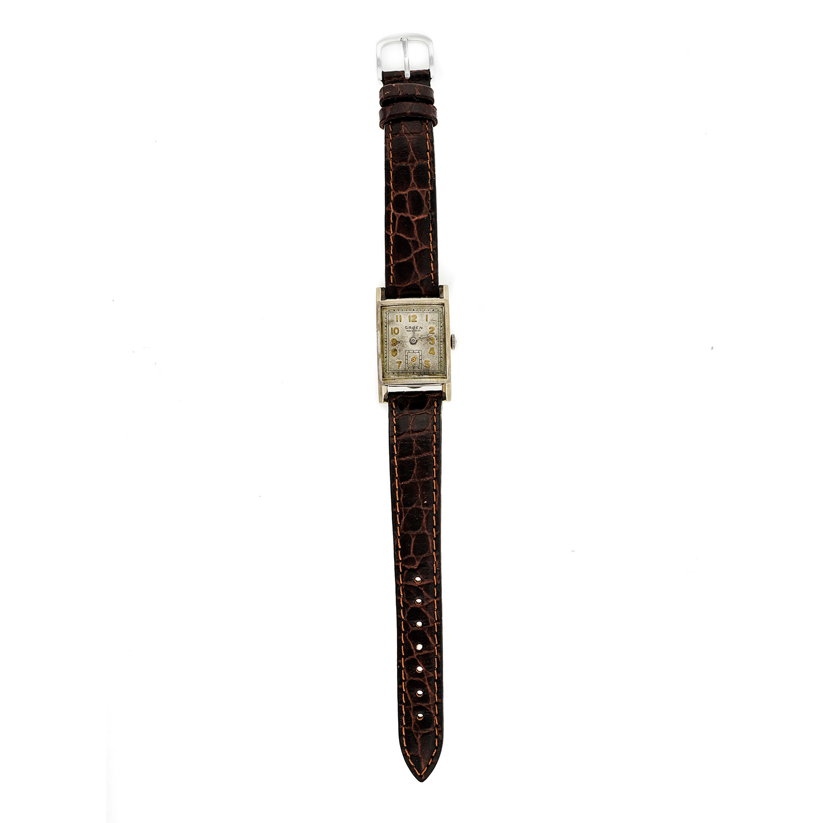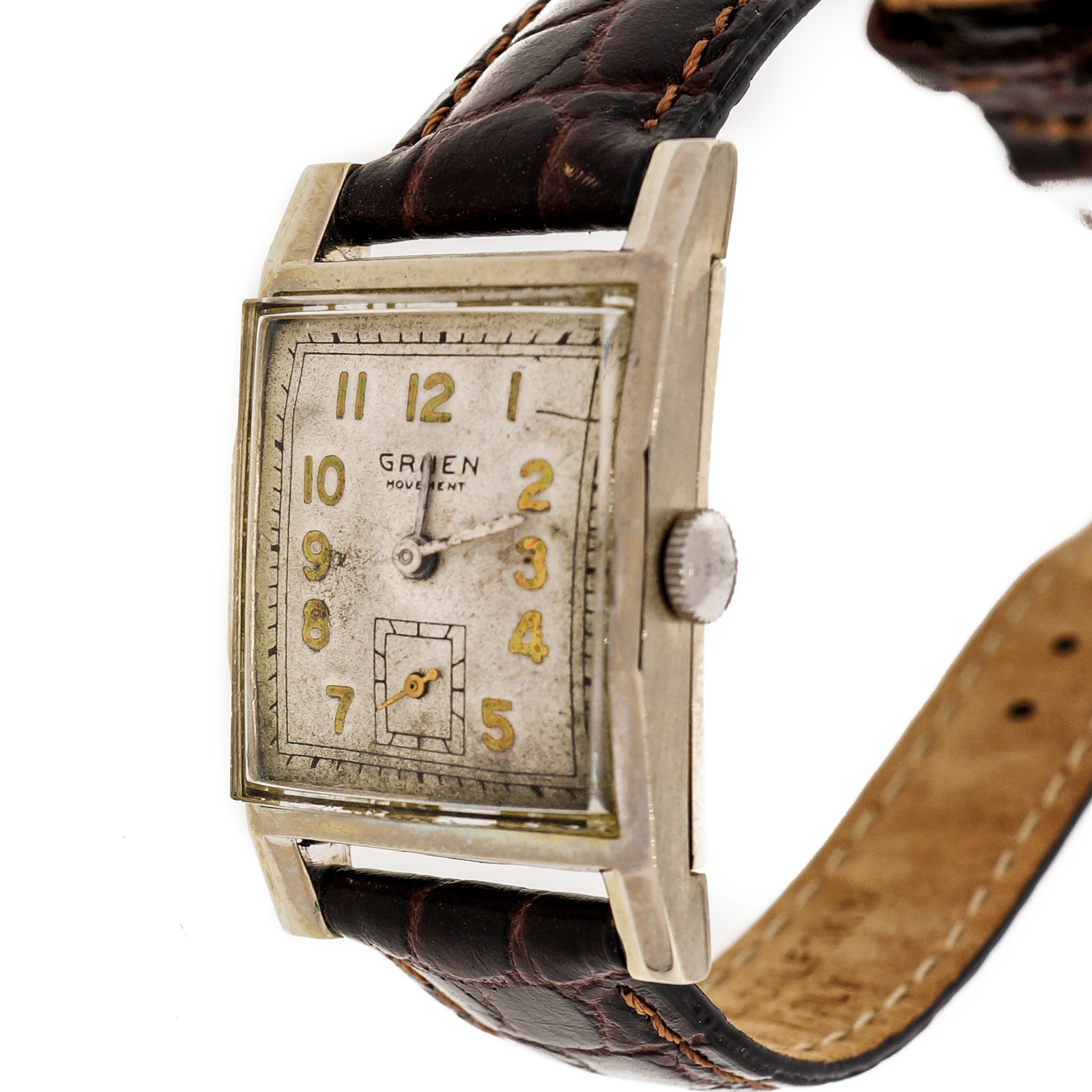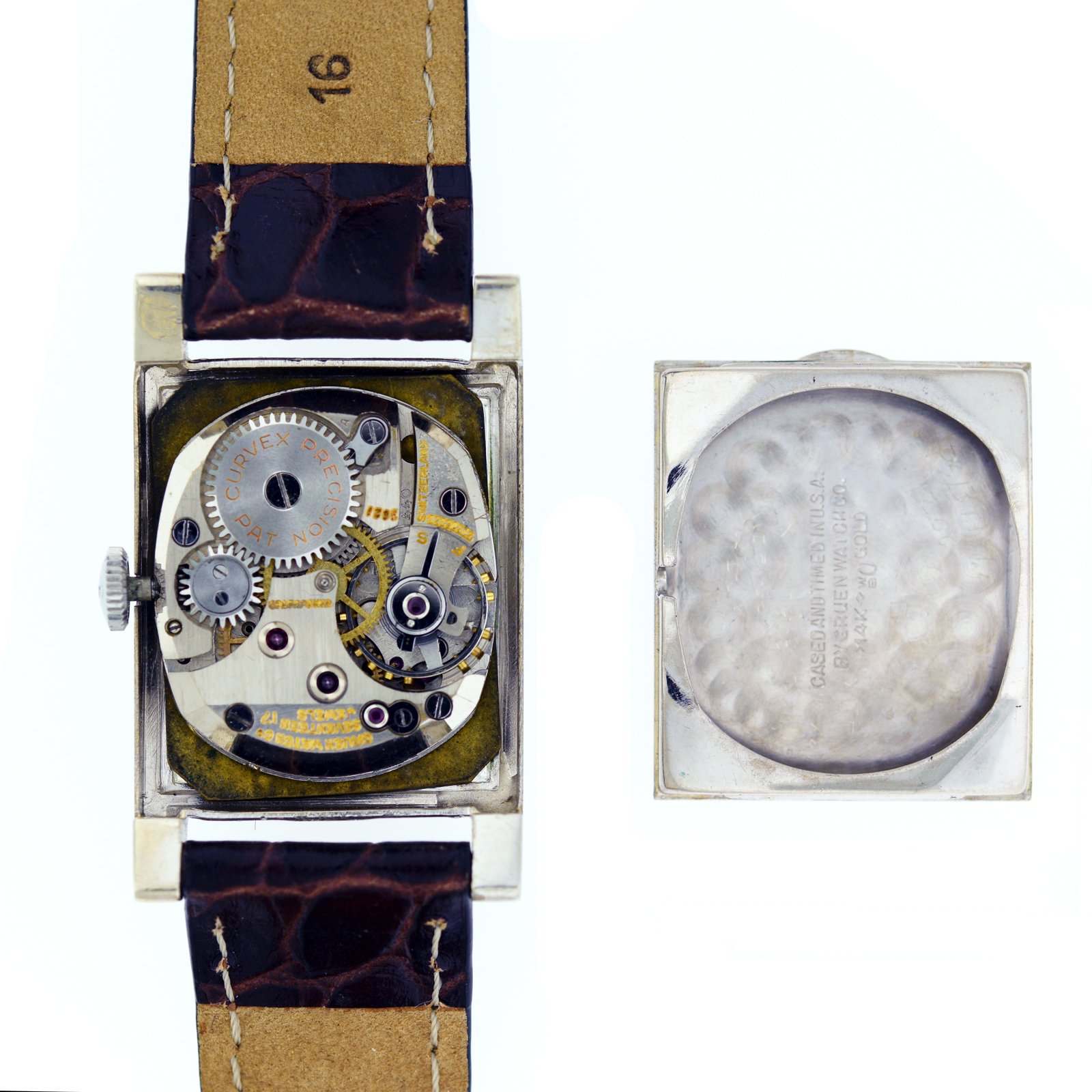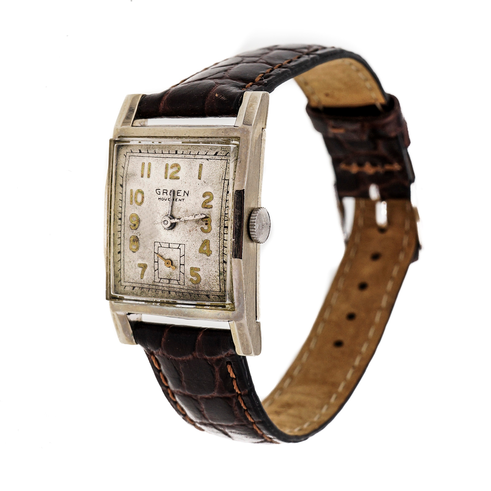 394-130-591Vintage 1925 Gruen Deco 14k White Gold Wrist Watch