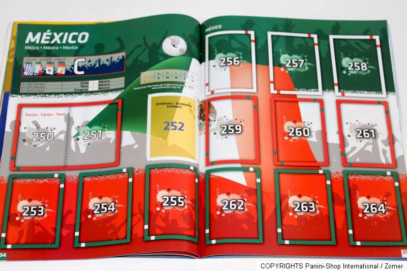 Die Kollektion umfasst 348 Sticker und 12 Nationalmannschaften, das Album hat 48 Seiten und ist in verschiedenen Sprachen verfasst, wie üblich bei Panini. Die 348 Sticker teilen sich auf in 24 Glitzerbilder und 324 normale Hochglanzbilder.