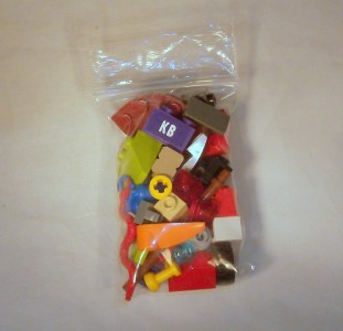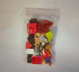 Purchase this minifigure and receive a free grab bag of LEGO parts and pieces. Your bag may not be the actual grab bag pictured here but it will contain approximately 35 small random pieces.