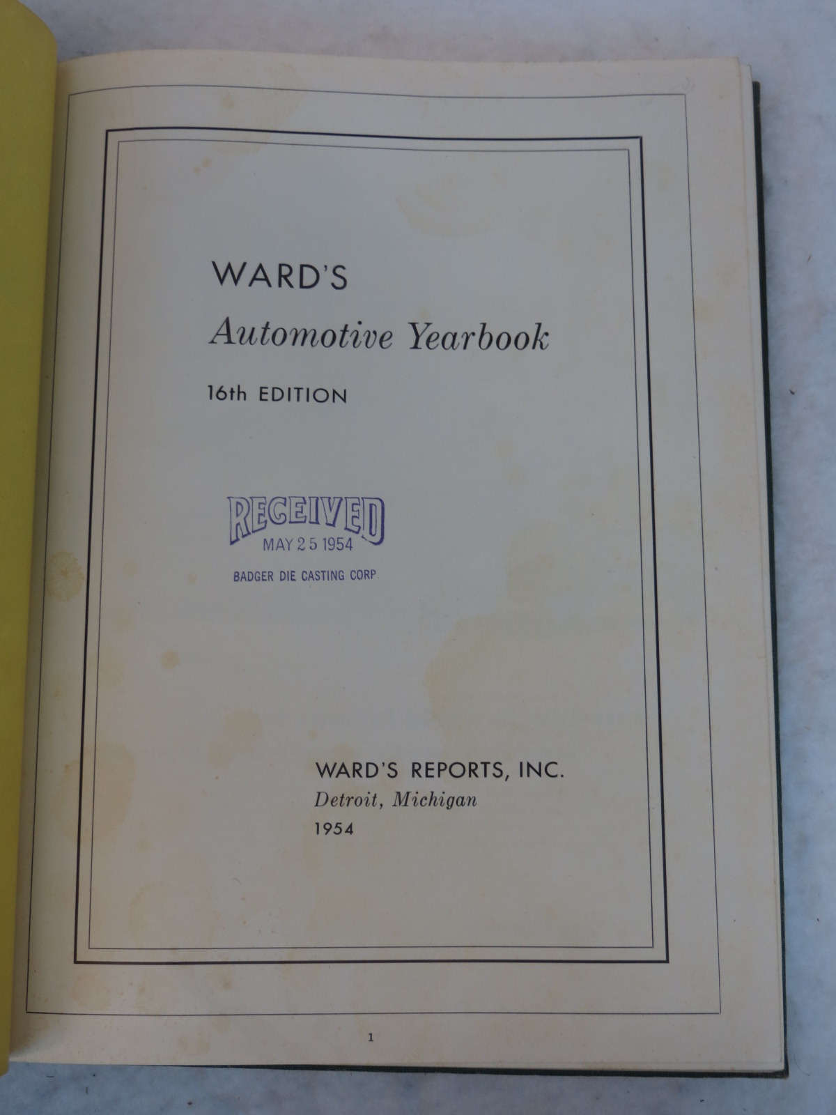 WARD'S AUTOMOTIVE YEARBOOK 16TH EDITION