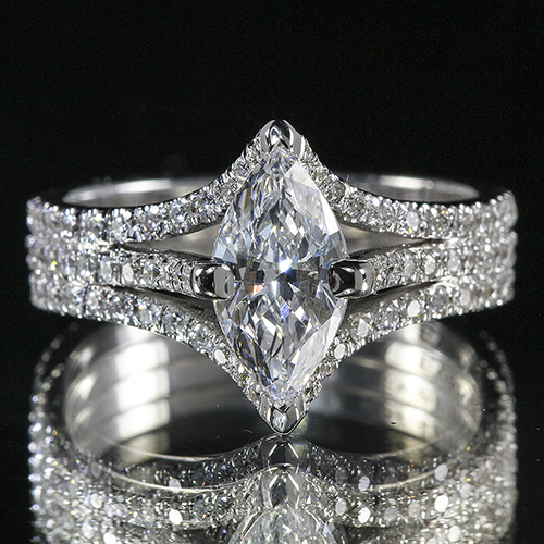 We present this striking, Diamond Engagement Ring skillfully crafted from 18K White Gold symbolizing everlasting love and commitment! The center stone carried on this piece is a 1ct of Marquise cut diamond with F color and SI1 clarity. Accenting this gorgeous center stone are 1.25ct of round diamonds with F-G color and SI1 clarity. The ring is available in any finger size requested. Here at Wonder Jewelers, we make the best efforts to bring you High-Quality Jewelry and Diamonds at Manufacture Direct Prices. We are Diamond-Cutters and Jewelry Manufacturing Company, therefore our prices are UNBEATABLE!
