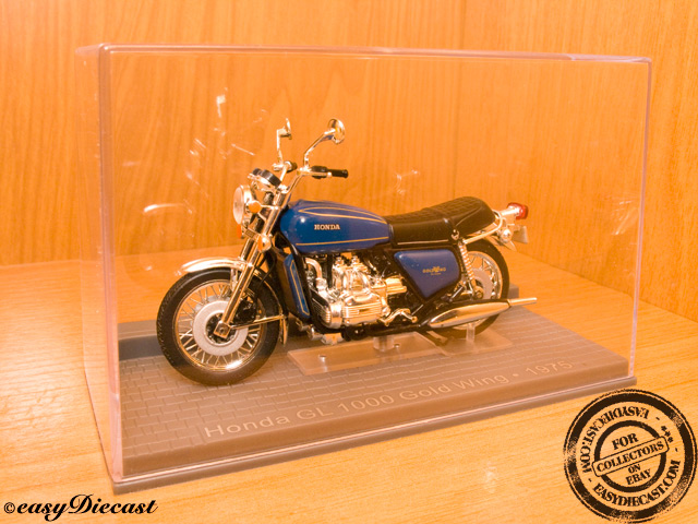 RARE scale 1:24 *HONDA GL1000 GOLDWING - 1975* . Mint condition. From the "Classic bikes" spanish Altaya collection. Few units made. Includes black pedestal with