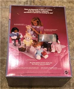 Vintage MY CHILD doll. Made by Mattel, dated 1985. Jointed arms, legs and neck. aqua eyes. Copper red hair.