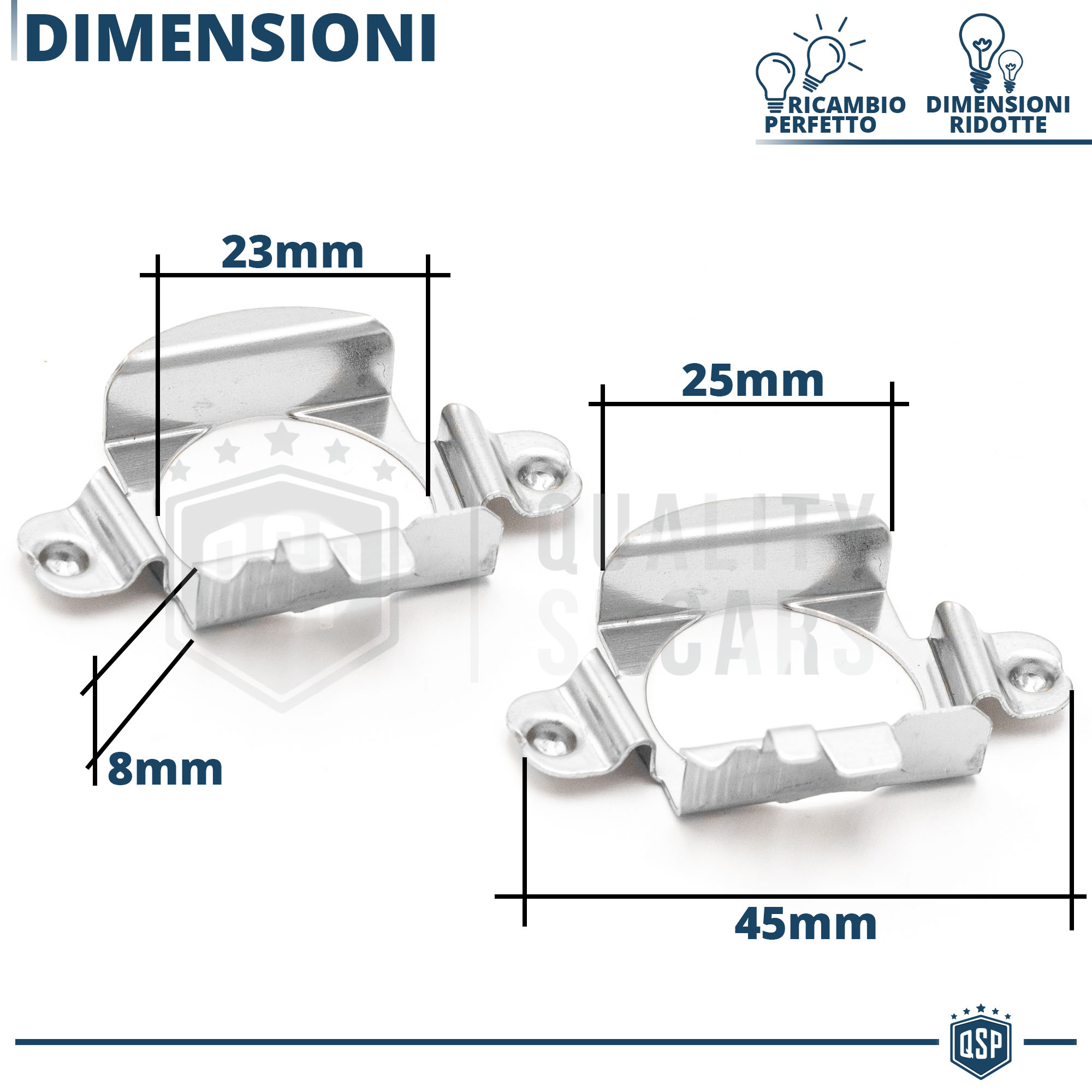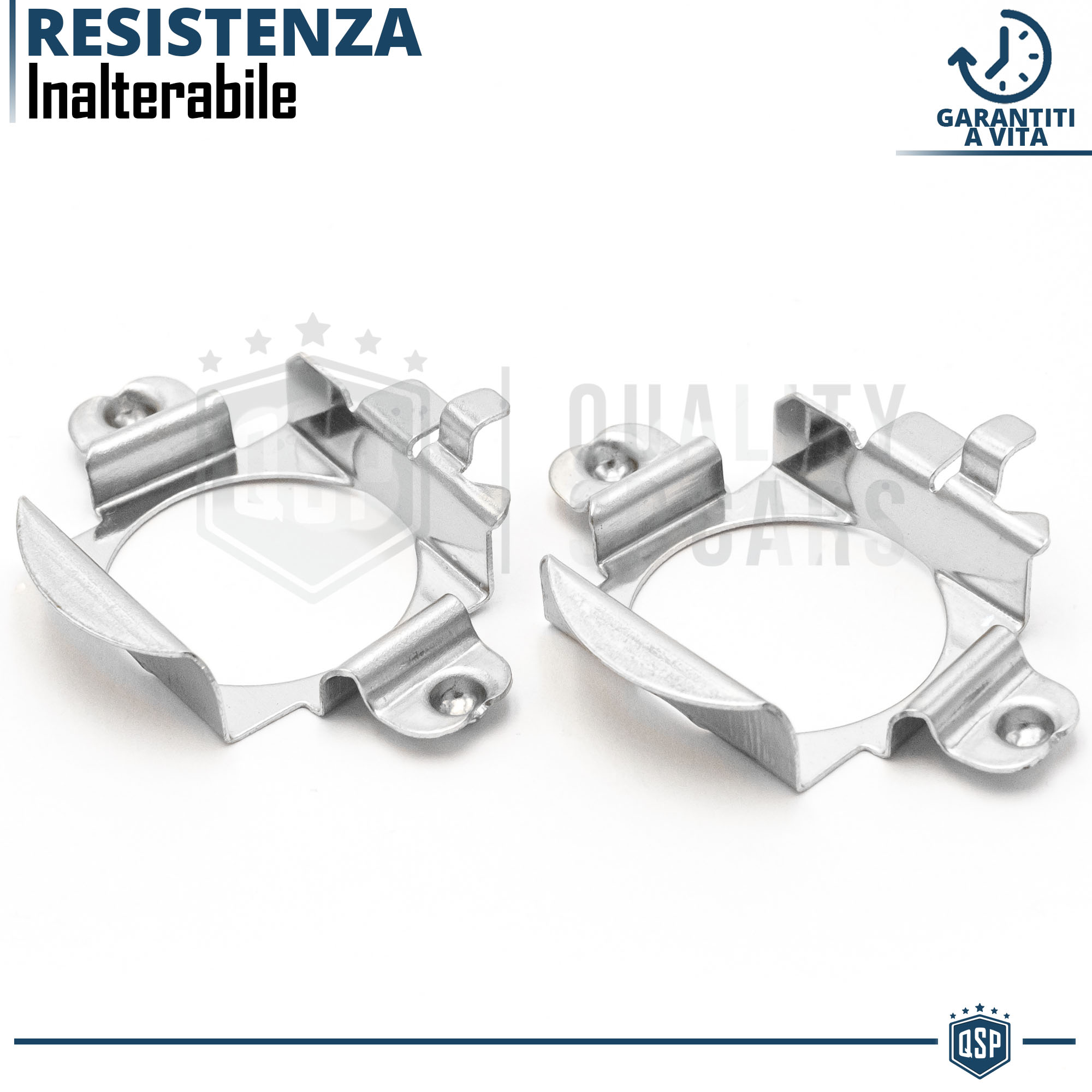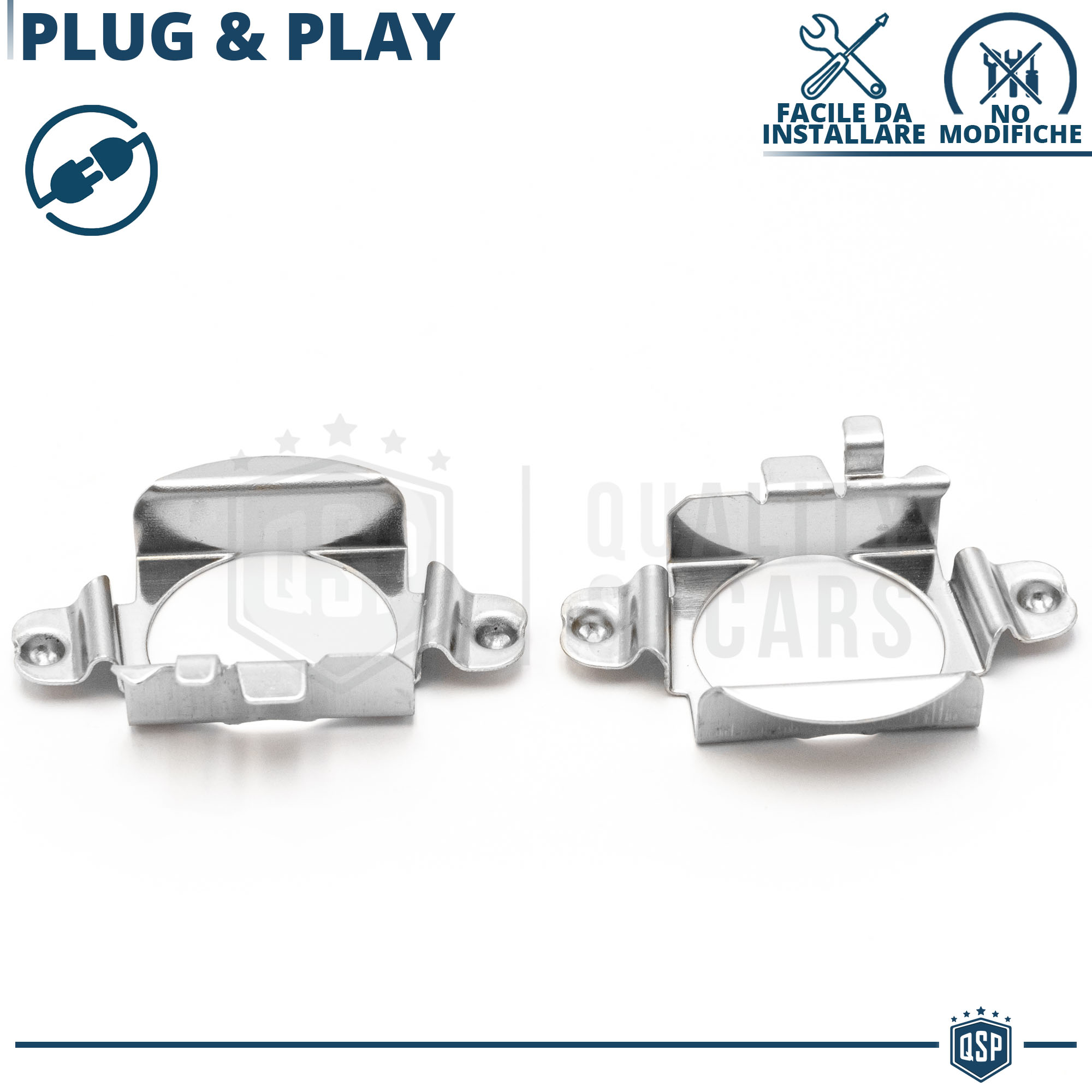 Rendono possibile l' installazione di kit luci su vetture che non presentano la classica clip di metallo per il bloccaggio della lampadina all' interno del faro, permettendo un montaggio professionale senza adattamenti nè modifiche.