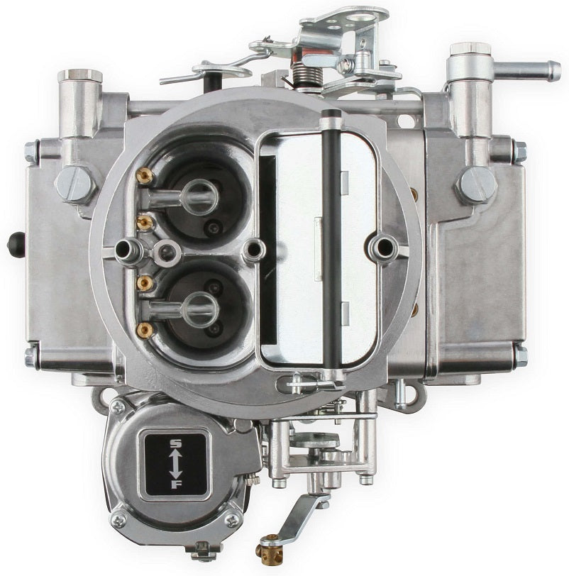 Brawler die-cast carburetors are now available in a side hung bowl design. With a simpler one-fuel line connection, these new carburetors are a perfect fit for bolt on street performance. The carburetors are equipped with universal throttle levers to accommodate Ford A/T kickdown, GM 700 R4 mounting holes, and ability to mount brackets for Chrysler vehicles.