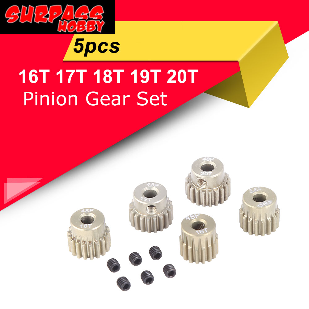 Metal material provide with longer life, more durable and wear-resistant. 5Pcs 48DP 3.175MM 16T 17T 18T 19T 20T Pinion Gear Set for 1/10 RC Off-road Buggy Monster Truck 3.175mm Shaft Brushless Brushed Motor.
