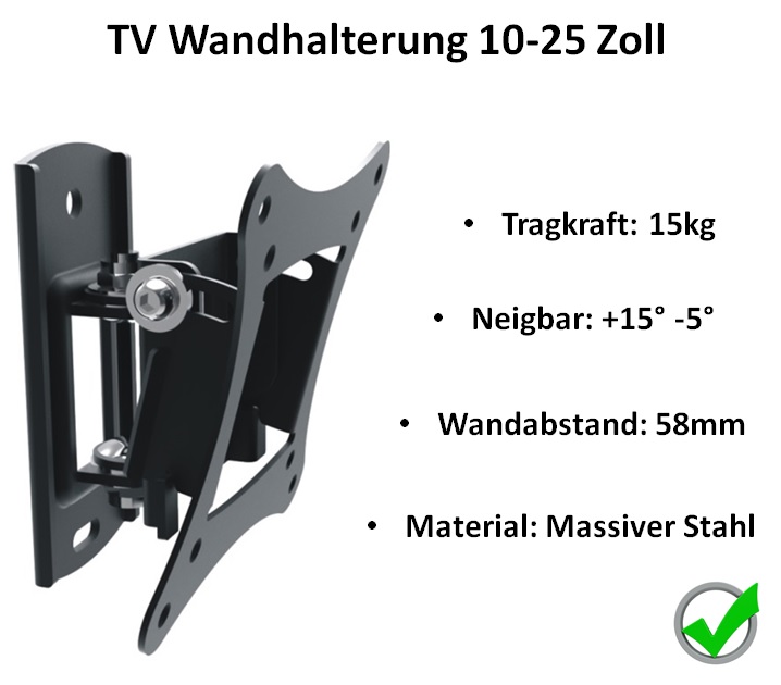 Passend für TV Zoll-Größen: 10 11 12 13 14 15 16 17 18 19 20 21 22 23 24 25 Zoll