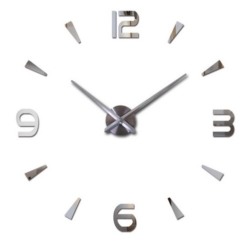 Moderne XL Wanduhr A176 Große 3D Uhr Ziffern XXL 80cm - 120cm Silber Wandtattoo